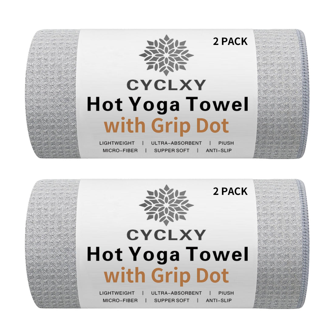 2 Pack Hot Yoga Towel with Grip Dot,Stickyfiber Yoga Mat Towels Non Slip for Hot Yoga,Absorbent Microfiber Sweat Anti-Slip Cover,Bikram,Pilates,Exercise,Fitness