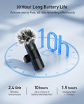 - Worry Free Battery Life: The battery capacity of the clip microphone has been improved. The receiver can last up to 15 hours, while the transmitter lasts for 5 hours. If one lavalier mic runs out, you can swap it with the fully charged lapel mic while charging