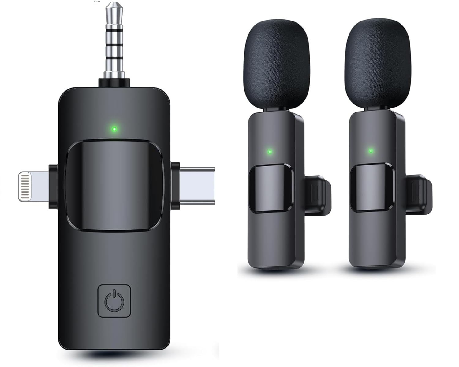 - Wide Compatibility: The upgraded wireless microphone features a 3 in 1 universal receiver, making it unnecessary to use multiple adapters. It is compatible with Android smartphones, the wireless microphone for iphone (including iPhone 15), iPads, laptops, PCs, and cameras