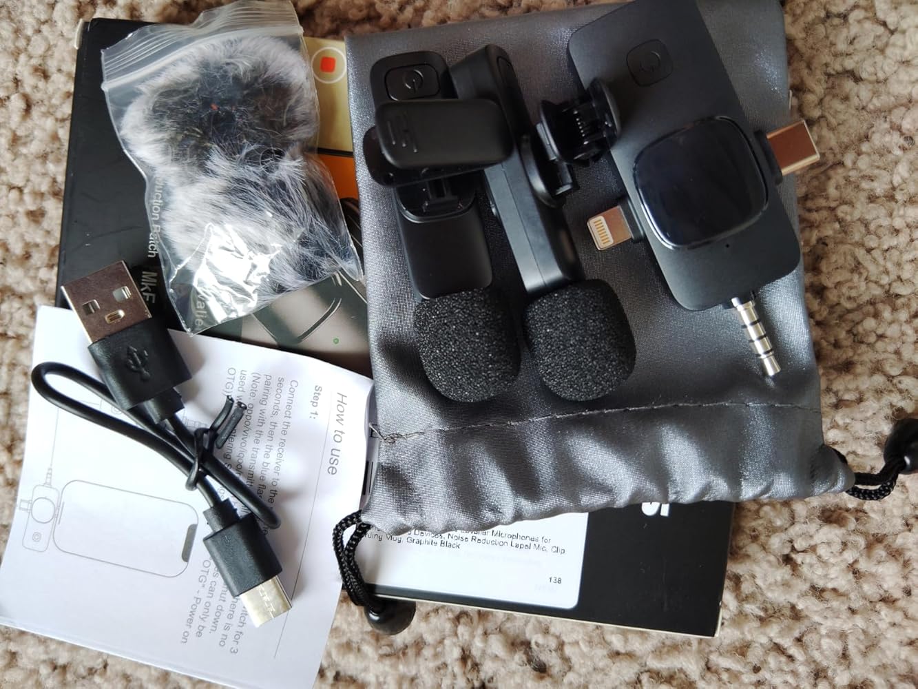 - Comprehensive Accessory Support: The clip on microphone wireless comes with two replaceable sponge covers, two windproof fur ball covers, two clips for the mini microphone, a waterproof storage bag, and a Type C charging cable, enabling you to record high quality audio anywhere