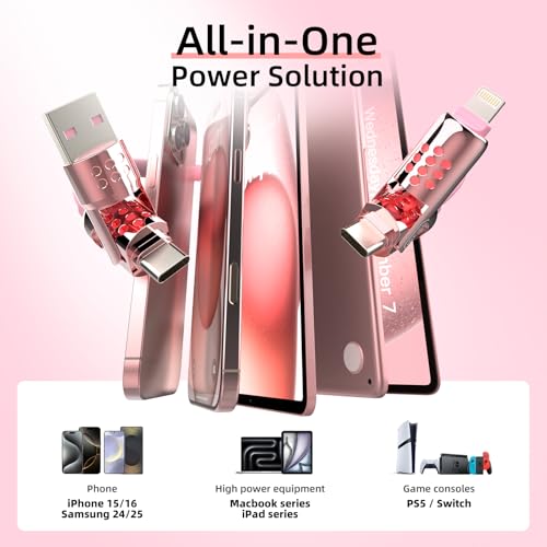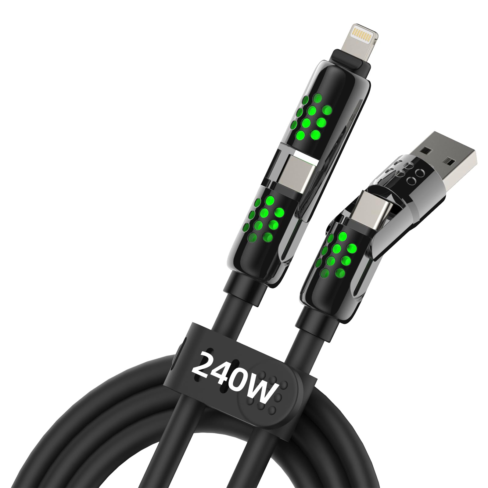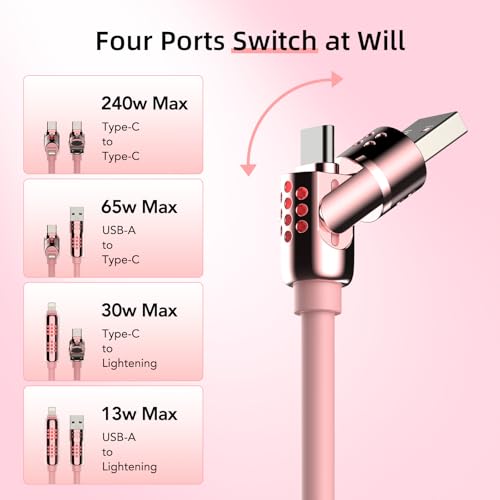 4-in-1 USB C Charging Cable, 6.6Ft Type C to Type C Cable, 240W Fast Charger for iPhone 16/15/14 Pro Plus Pro Max, for iPad MacBook Pro/Air, Laptops - Multi Charging Cable with USB-A