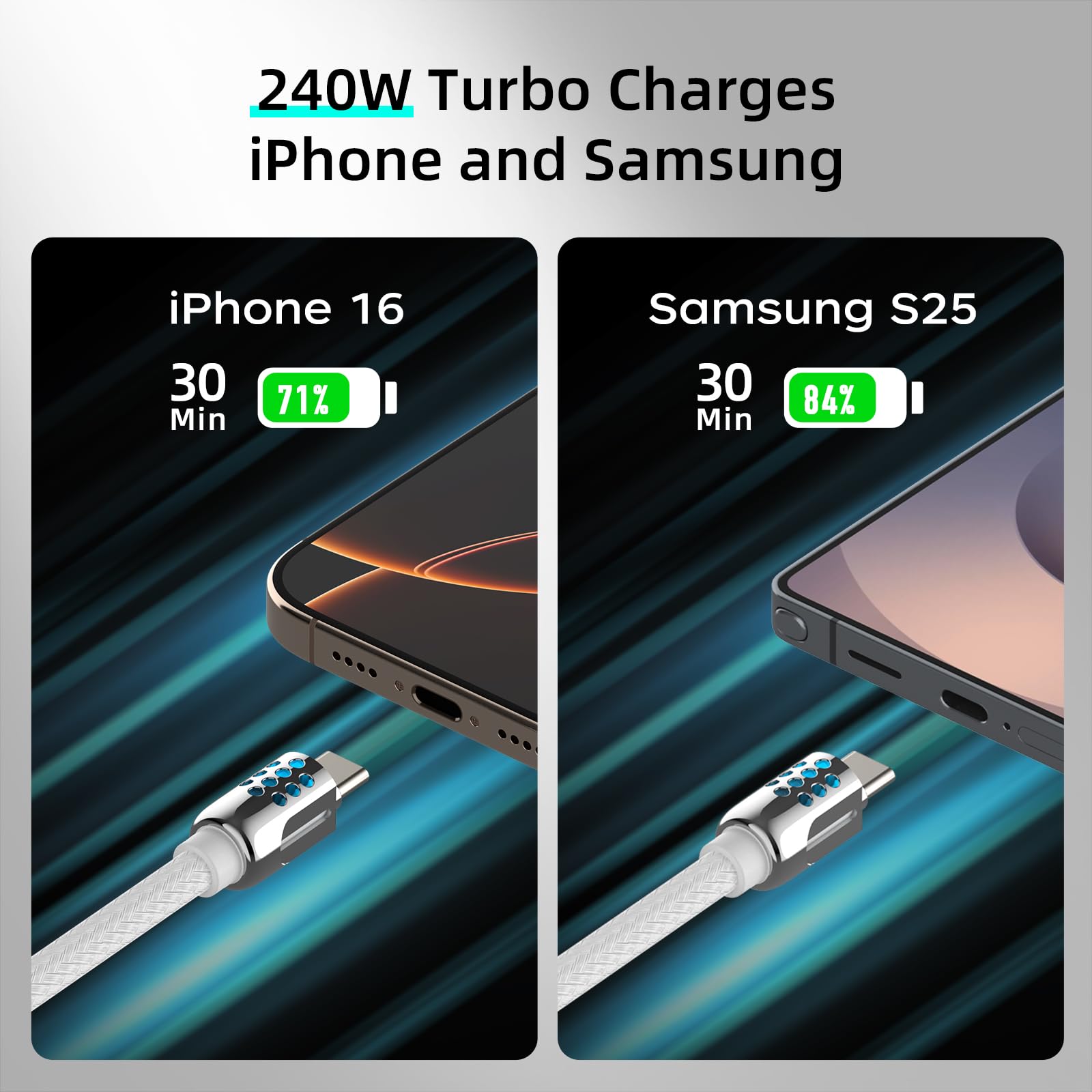 - 240W Ultra-Fast USB-C Charging: Dual USB-C ports deliver 240W max power: Charge a MacBook Pro to 86% in 35 minutes or a Galaxy S23 to 96% in record time. No more waiting—stay powered through deadlines, flights, or gaming marathons