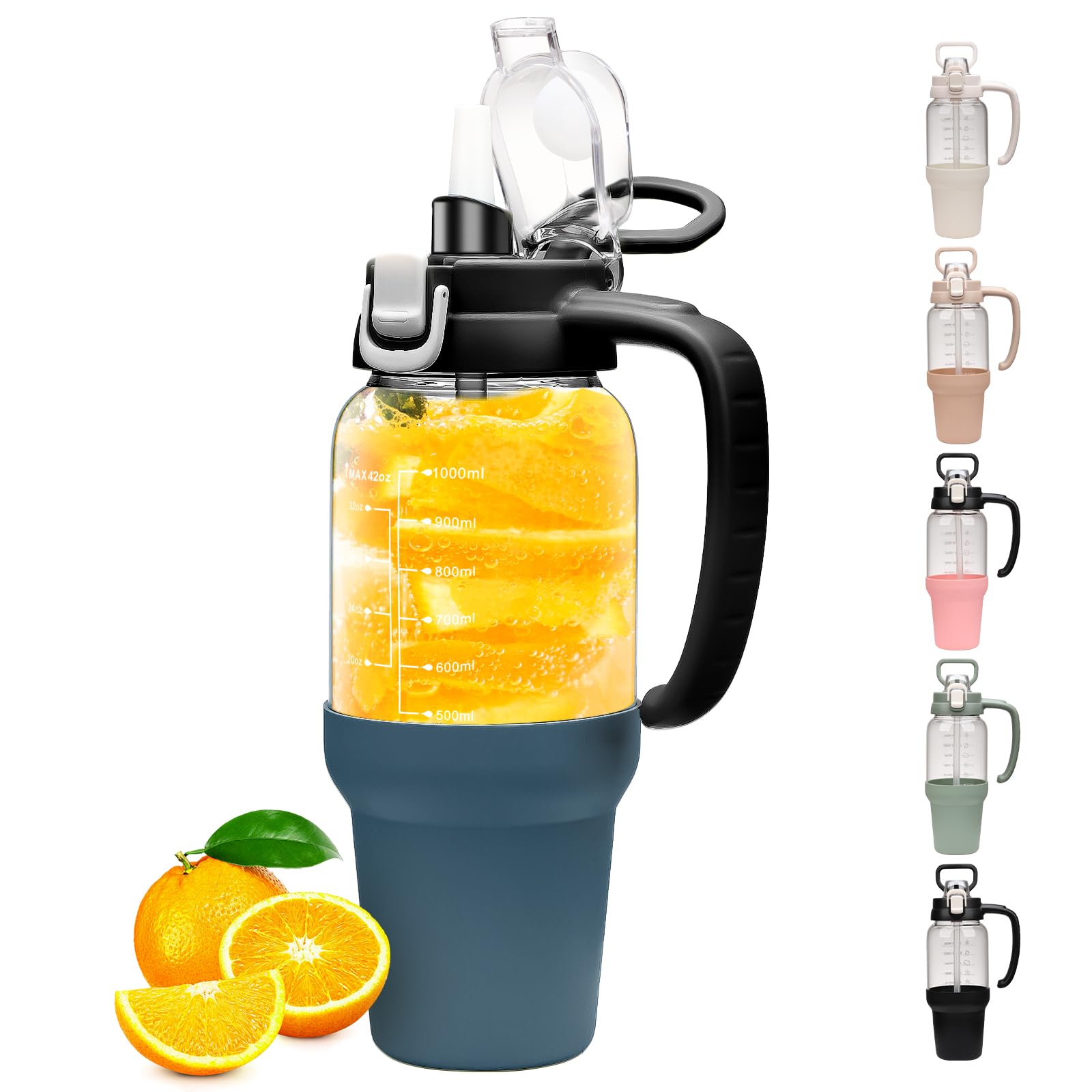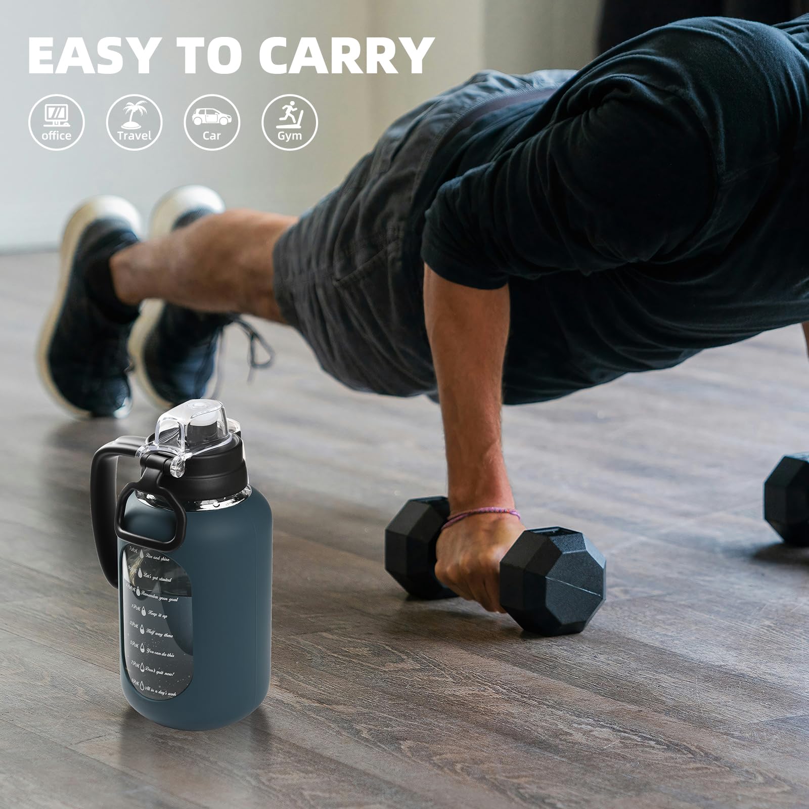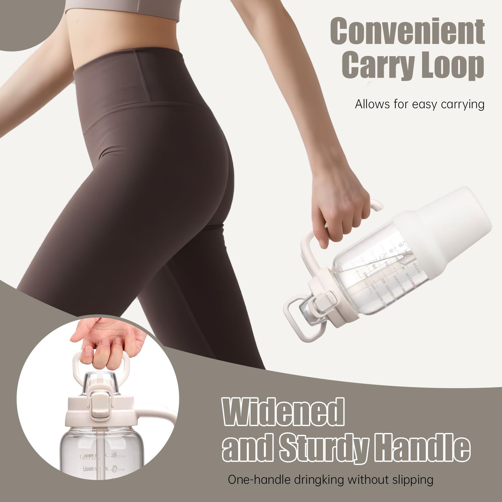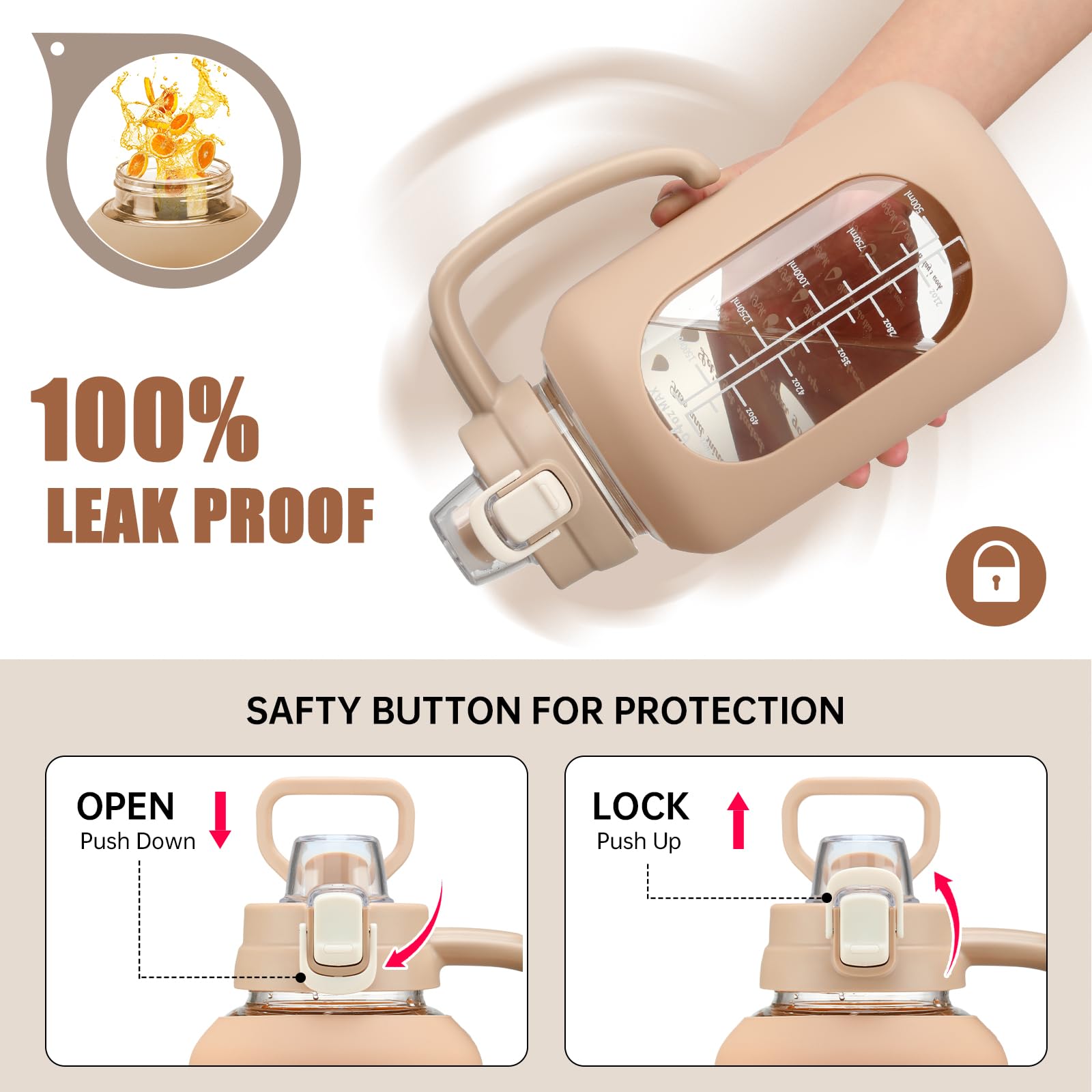 - Time and Volume Marker: The large drinking bottle with printed time and capacity markings, can track and remind you to drink water daily or after exercise, helping you develop a regular and healthy habit of drinking