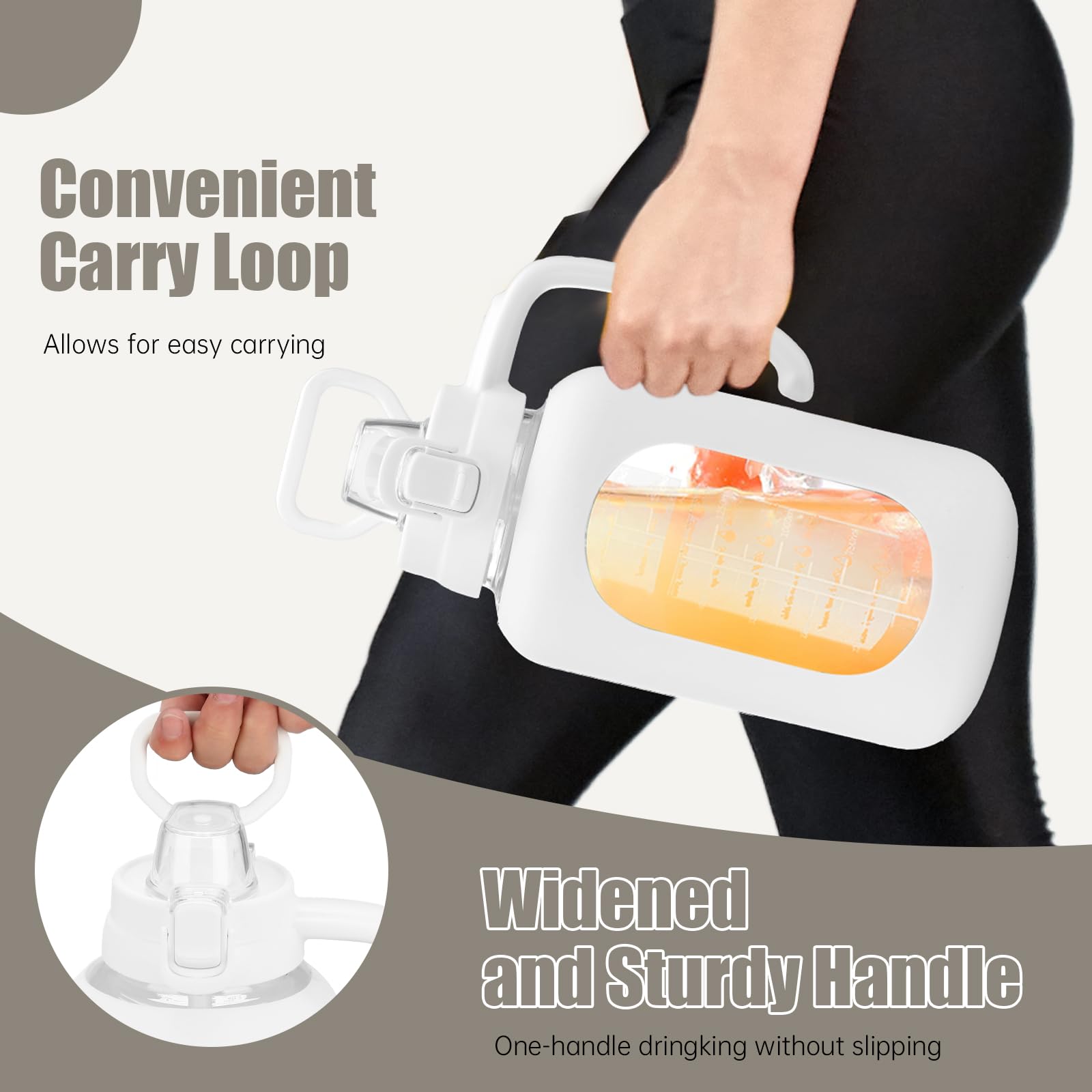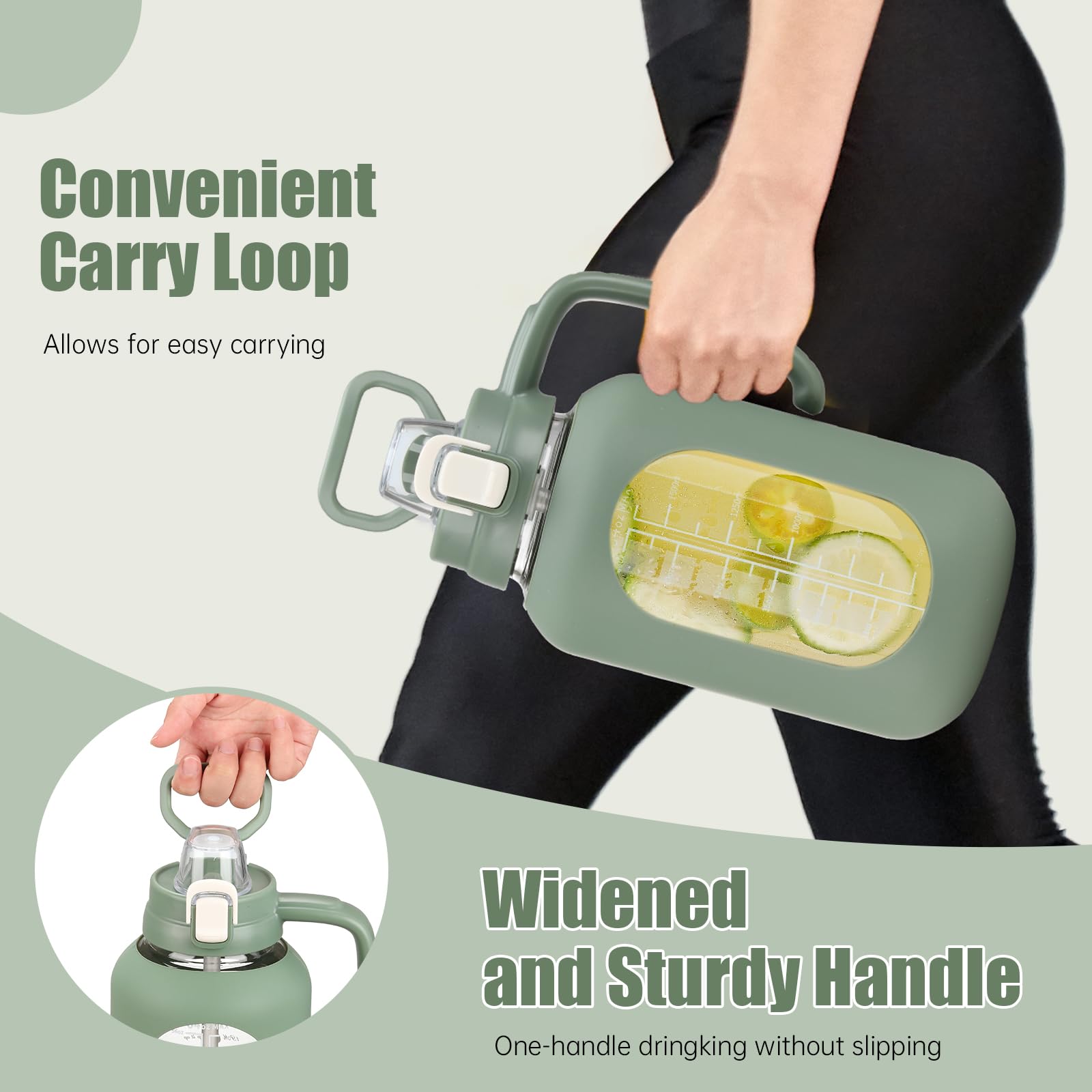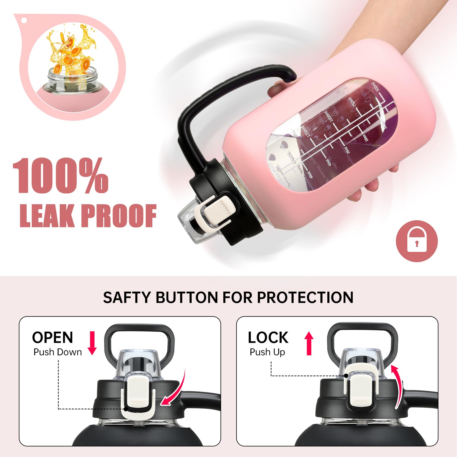 - Large Capacity and Easy to Clean: Our glass water bottles with handle designs to meet your different needs on various occasions, large enough for most person one day drinking amount, no need to fill water again. Besides, our glass bottle with wide mouth design and dishwasher safe, can be cleaned with a brush or machine