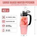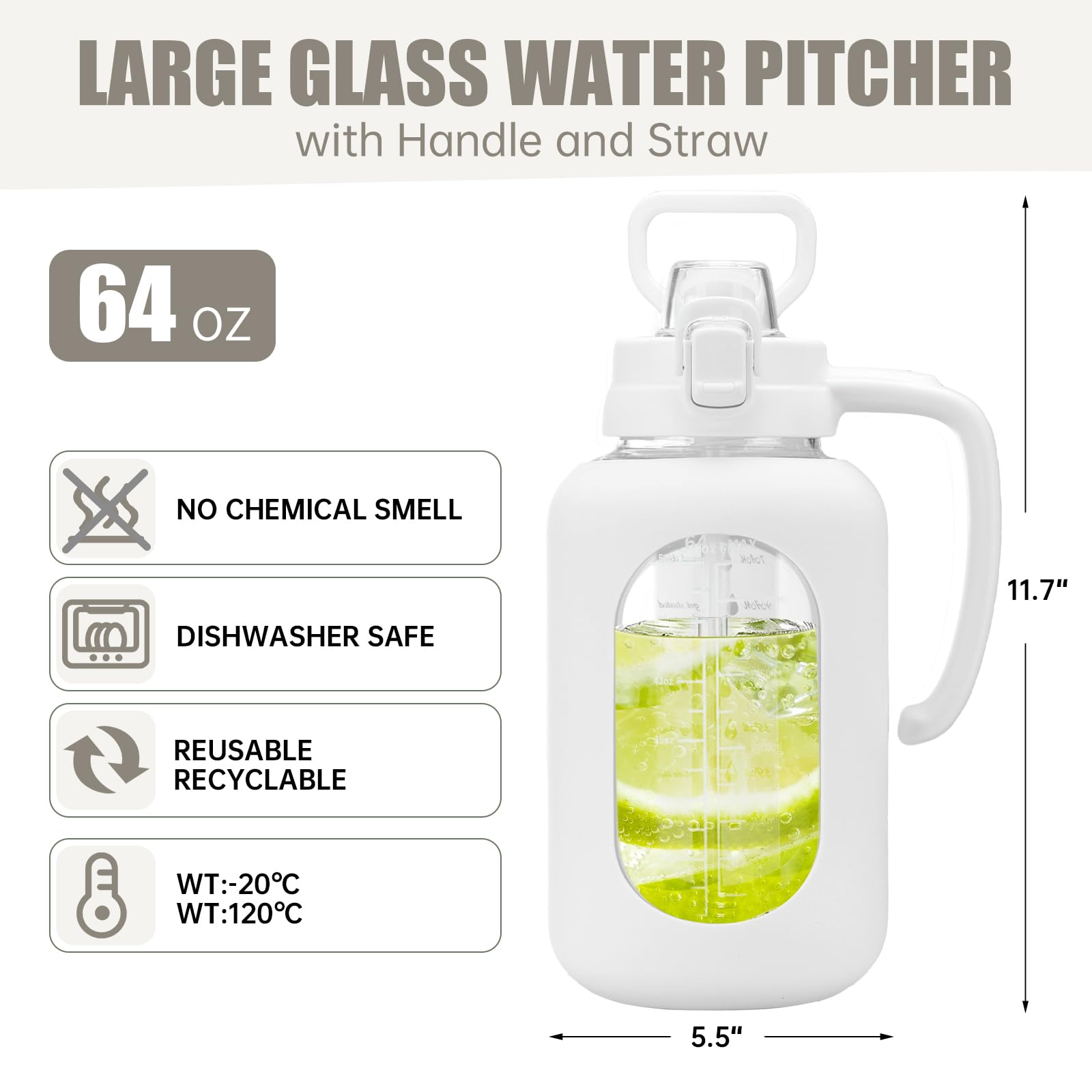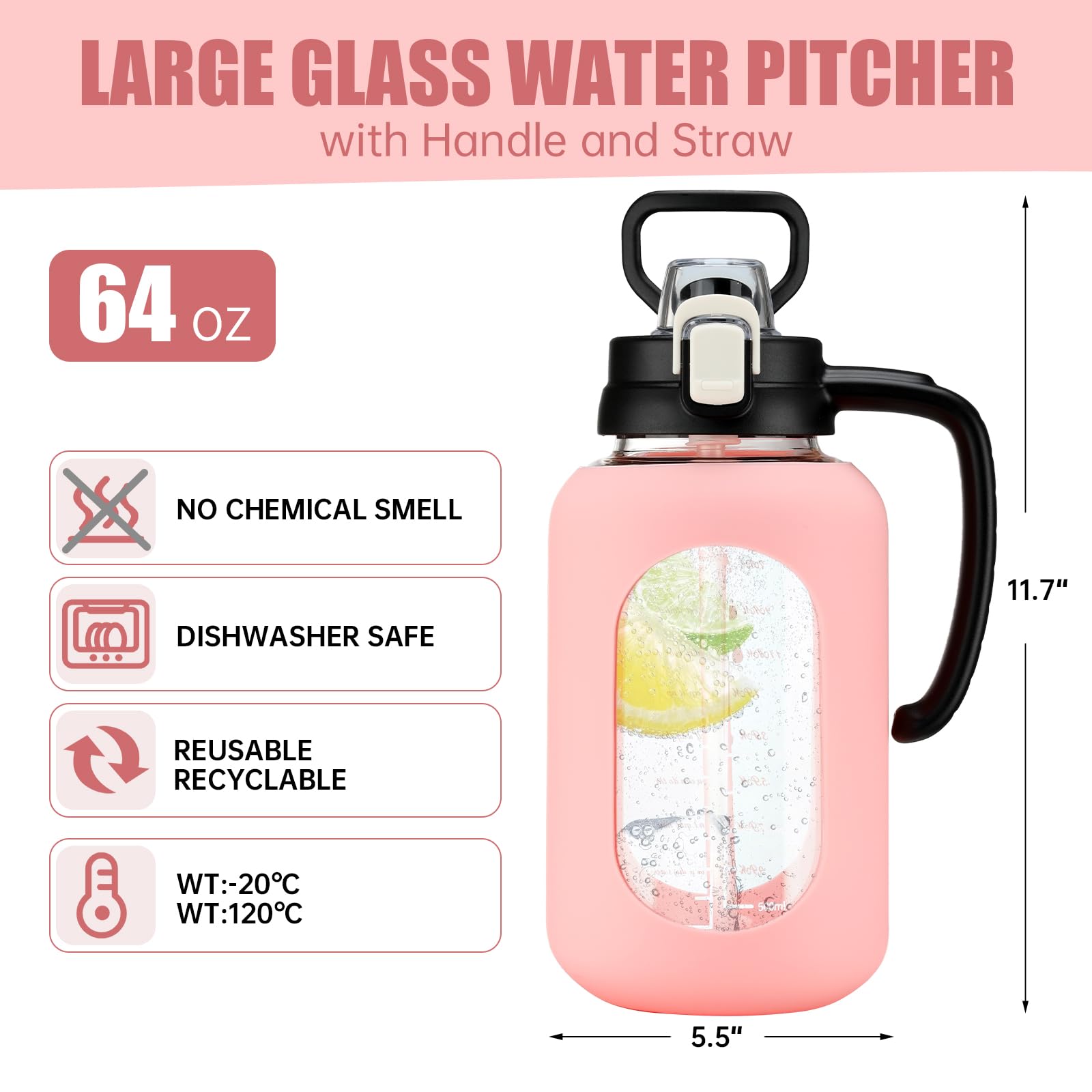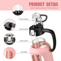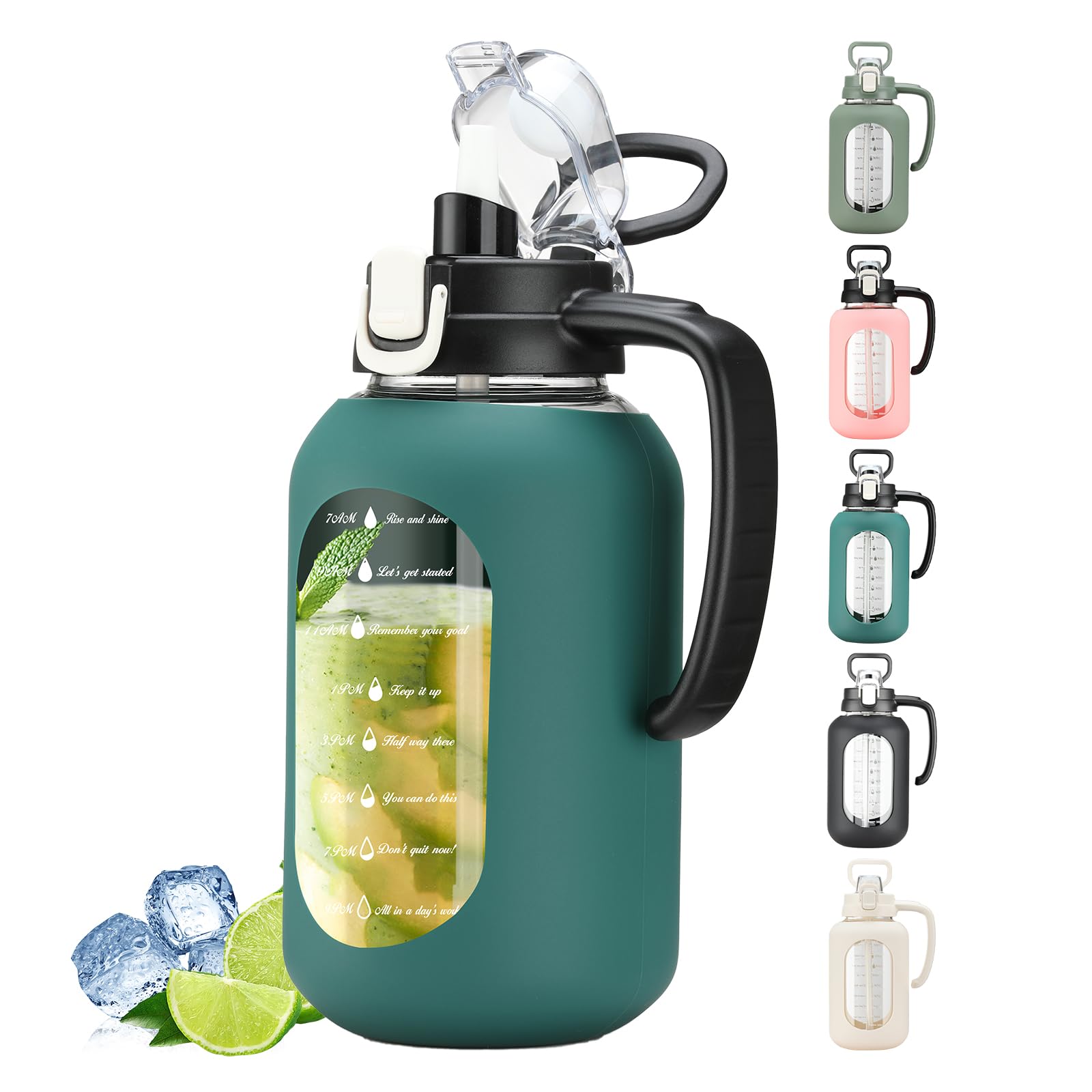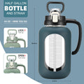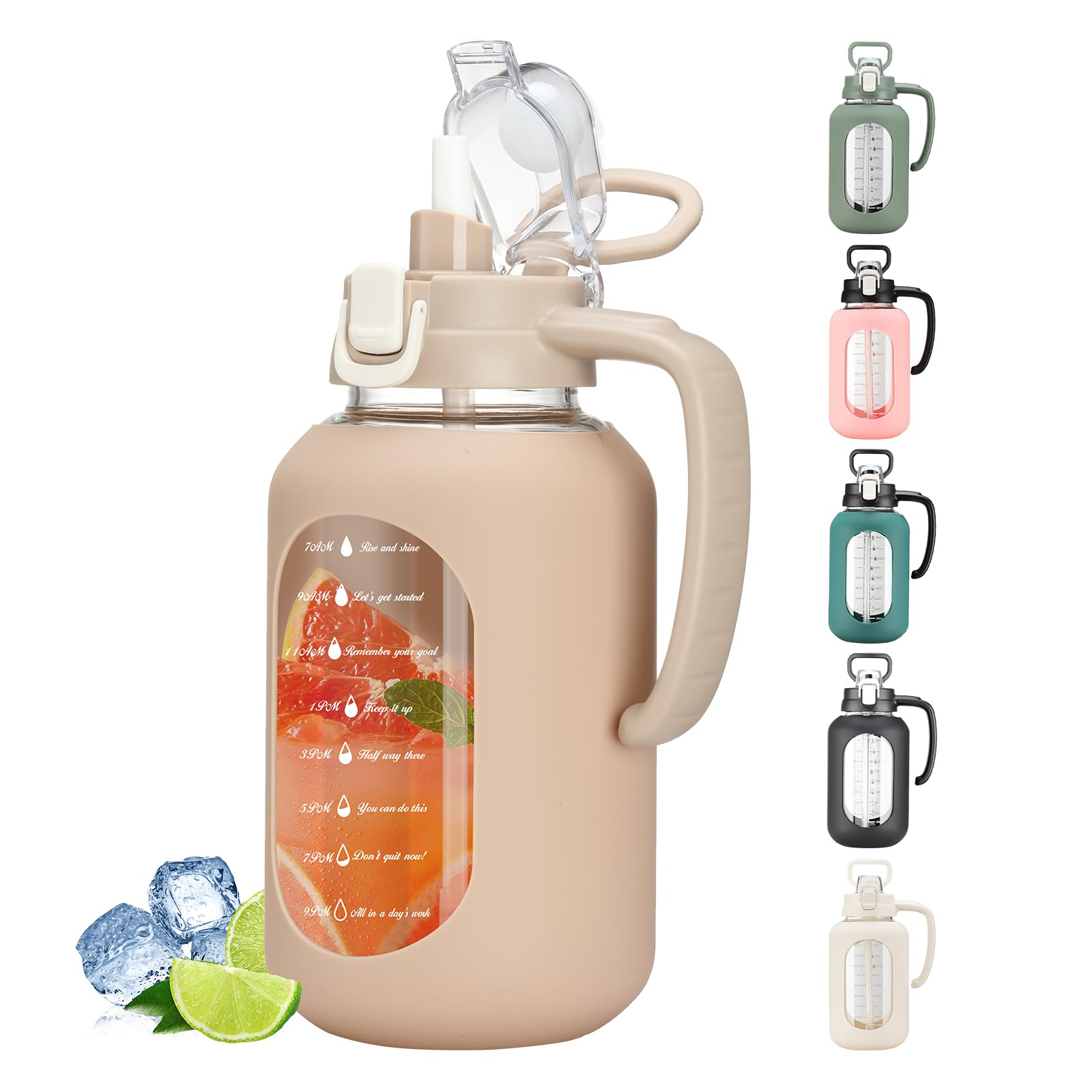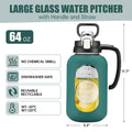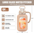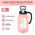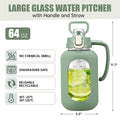 64 oz Glass Water Bottle with Straw and Handle Half Gallon Water Jug with Silicone Sleeve Large Water Bottle for Office, Gym, Outdoor Sports