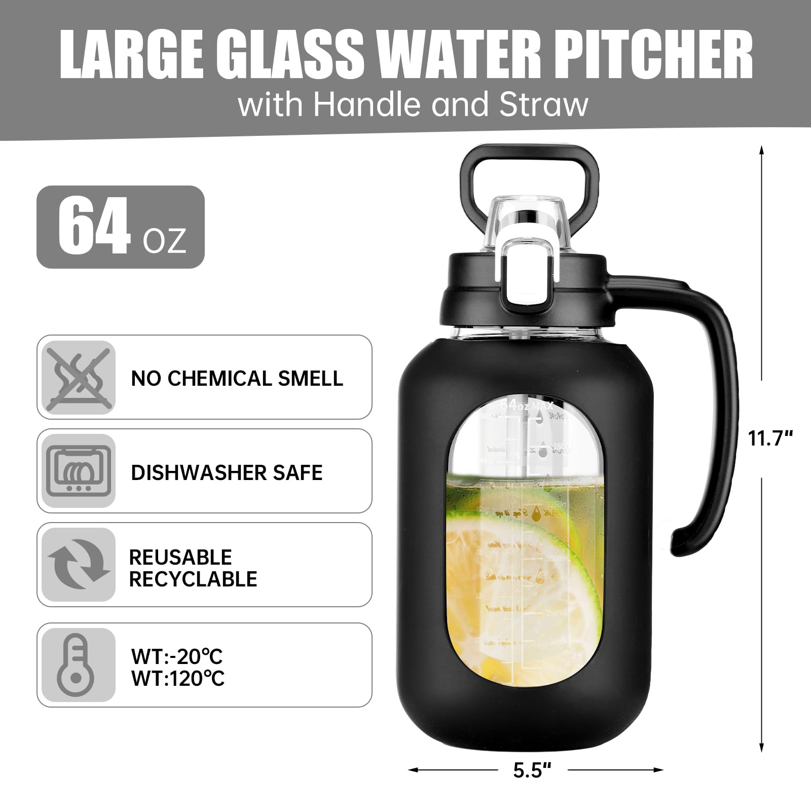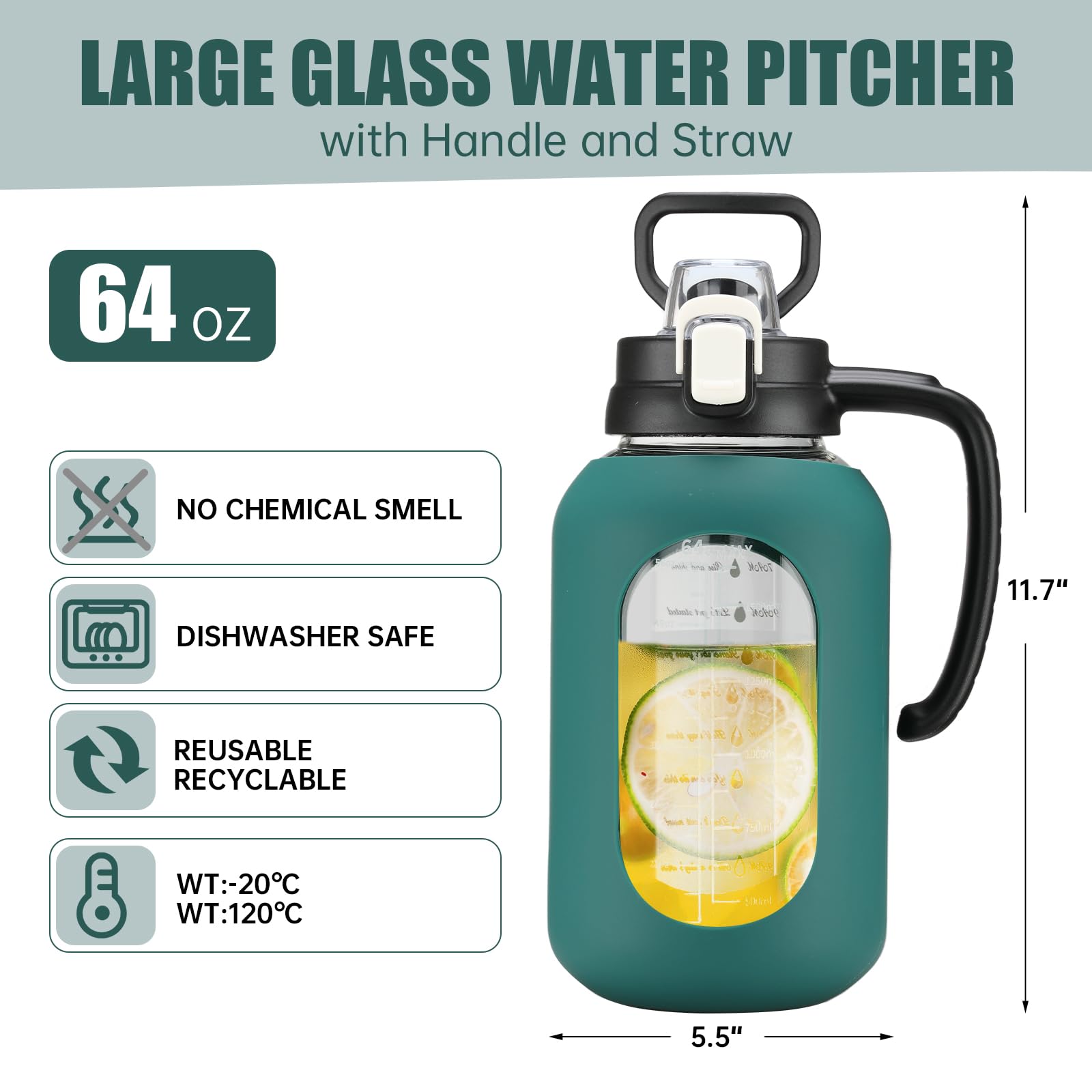 - BPA-free Borosilicate Glass: Our half gallon water bottle made of selected and thicker borosilicate glass, is more heat resistant and healthy. Glass bottle can retain the origin taste of the water or beverages without any chemical substances