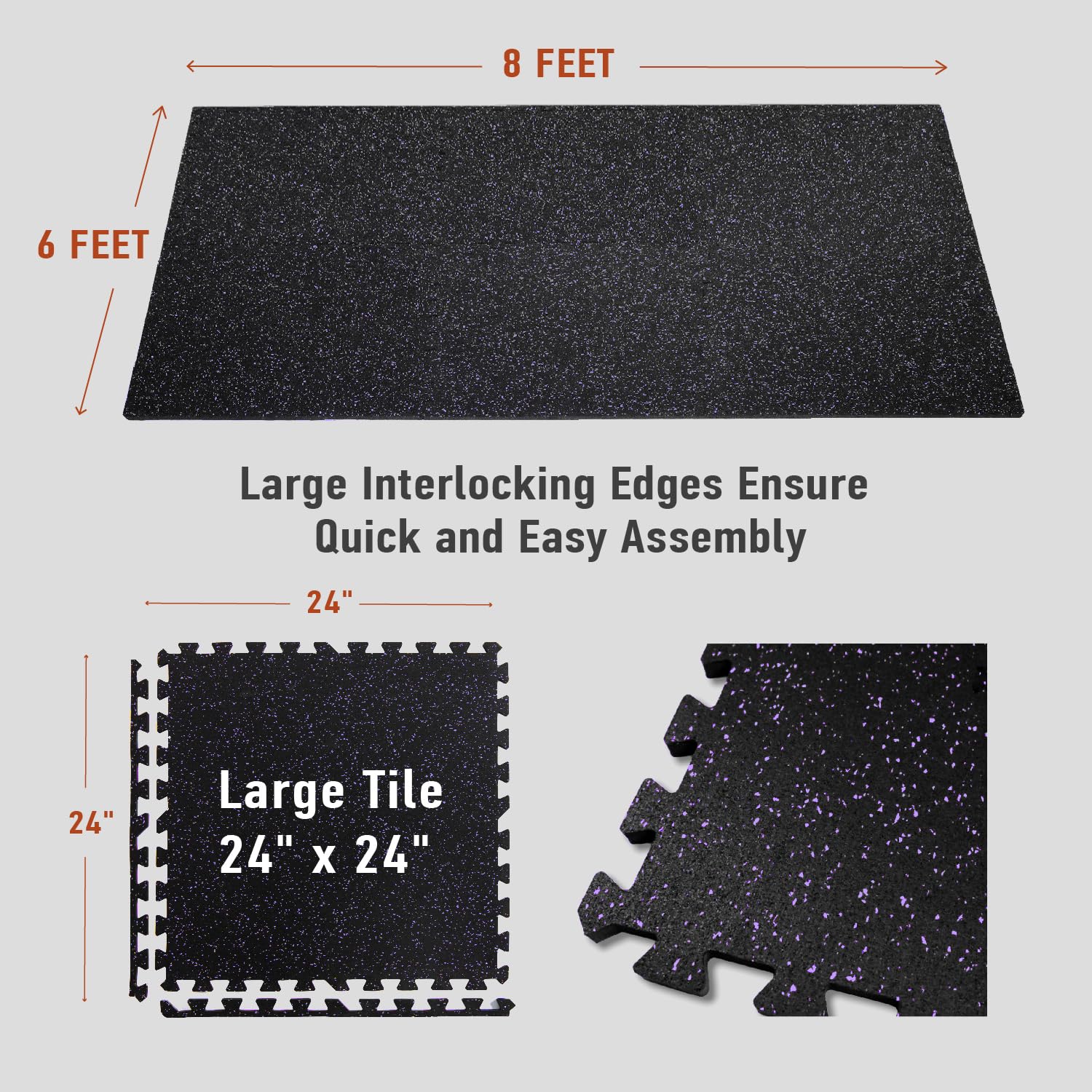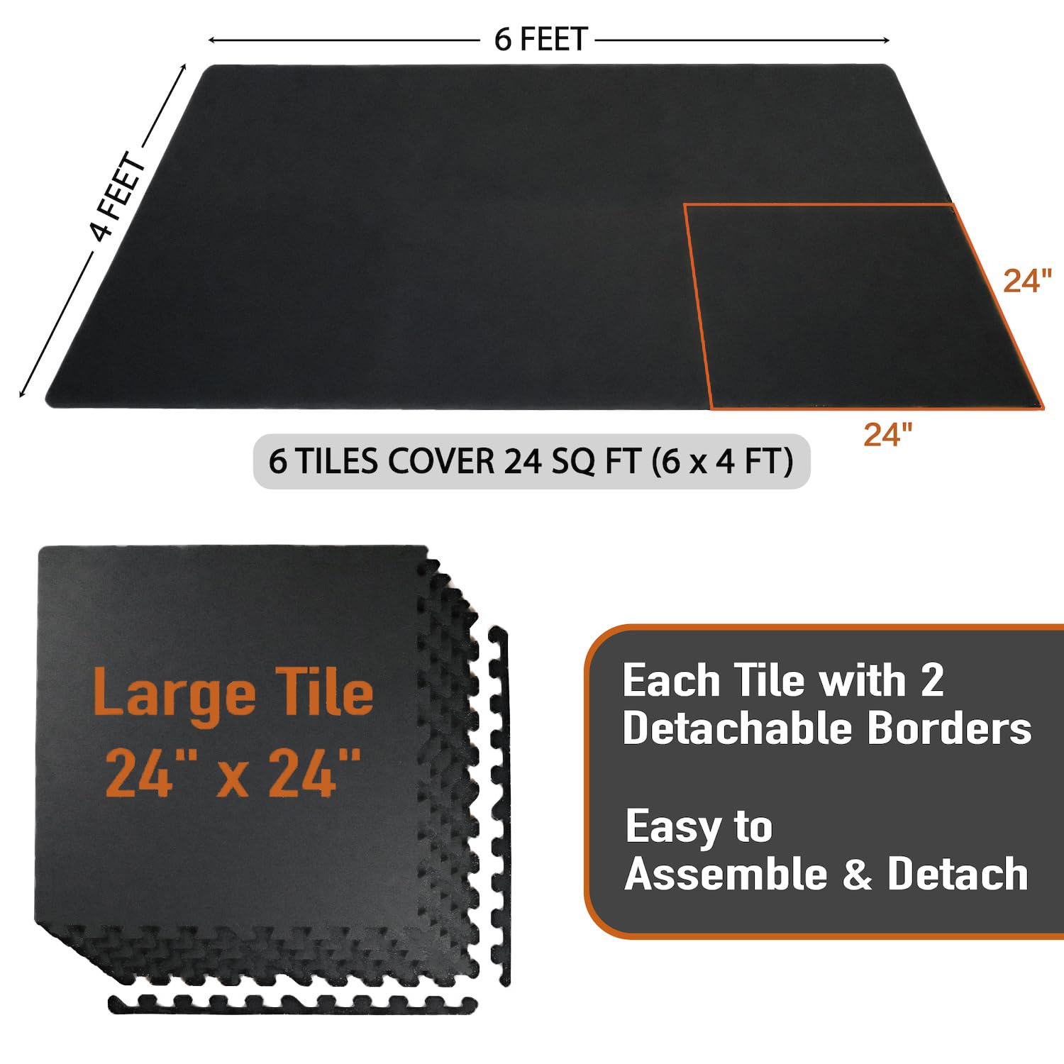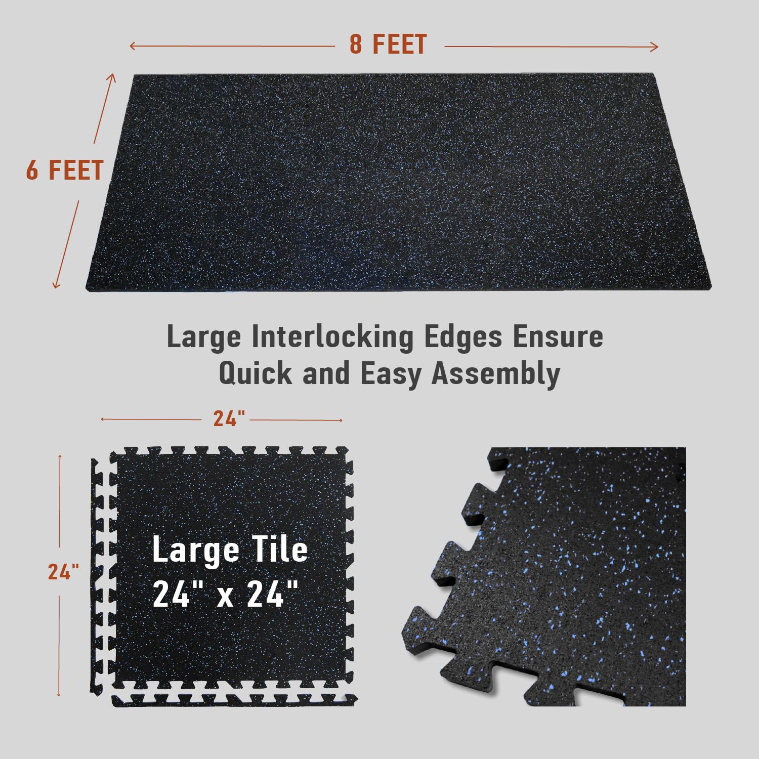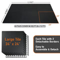- [Easy to Assemble and Detach]: 12 tiles (24" x 24" x 0.56" each), covers 48 sq ft (8 × 6 ft). Upgraded larger interlocking locks provide a secure fit, preventing any separation during use, ensuring you can work out without concerns of shifting. Simple assembly and detachment make it effortless to set up your home gym.