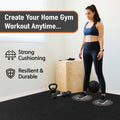 - [Upgraded Dual-Layer Design]: Concerned about your equipment scratching the floor during workouts? Our 2in1 Rubber Top EVA Foam Exercise Gym Mats are crafted to solve this issue. The textured rubber top layer, combined with a high-density EVA foam bottom layer, seamlessly creates a non-slip tough surface with excellent shock absorption.