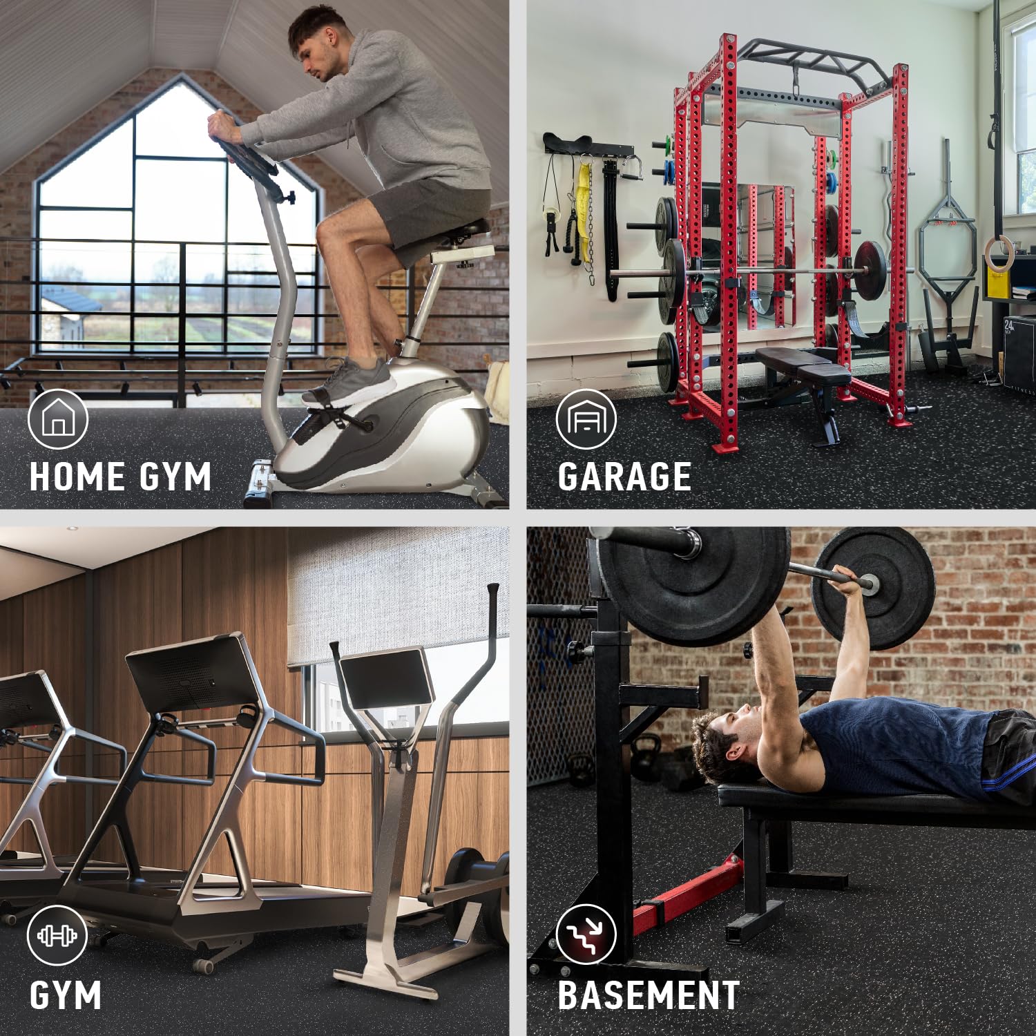 - [Sturdy Rubber Build]: Crafted from premium recycled rubber, our gym mats handle intense workouts with ease. These resilient tiles effortlessly support heavy machinery, providing reliable floor protection against scratches, scuffs, and dents from weights, dumbbells, medicine balls, jump ropes, and other workout gear in a home gym.