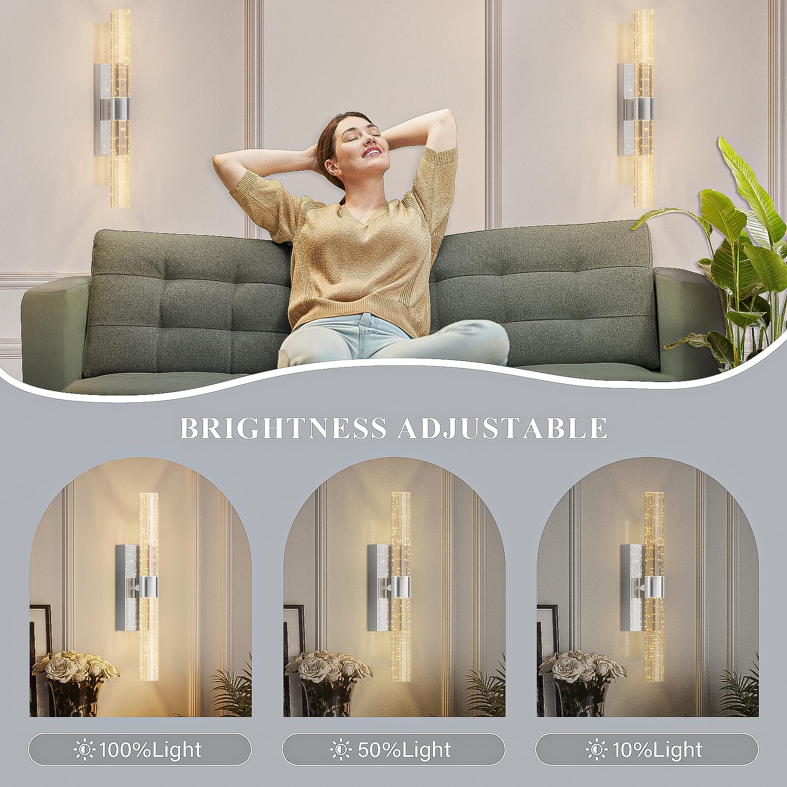 - 【Eye-Caring LED sconce with Dimmable Brightness】The camuucci wall lamp features LED lighting.No need to change light bulbs. When adjusting the brightness (10%-100%), it ensures sufficient illumination and even light. Without glare or flickering, this design takes into account the protection of your eyes and those of your children.