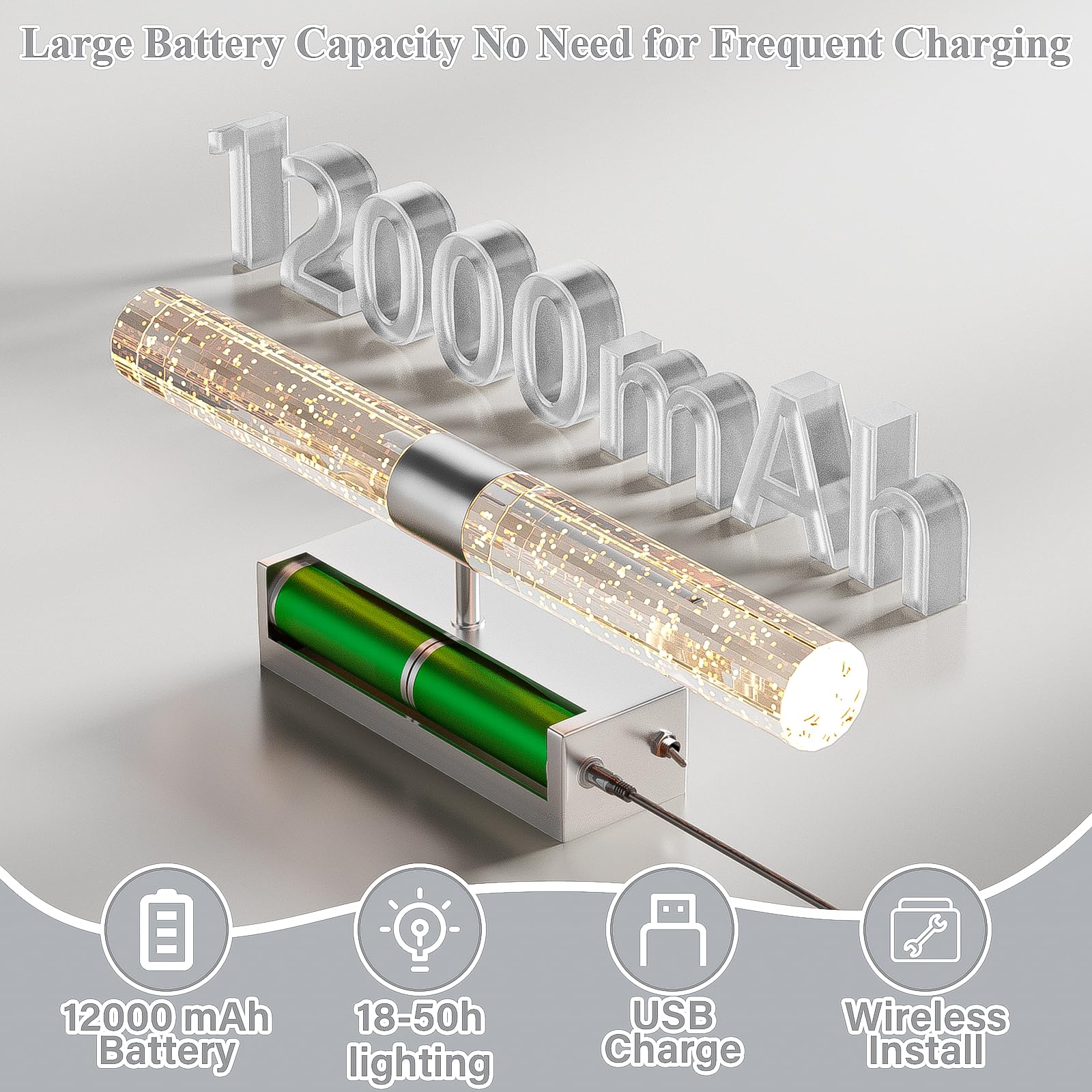 - 【Large Battery & Longer Lasting】Our battery powered wall sconces have a built-in 12,000mAh battery for long battery life. Lighting time 18 hours (highest brightness) -50 hours (lowest brightness). No need for frequent charging, helping you save electricity. Suitable for your living room, bedroom, foyer, bathroom, hallway, and dining room.