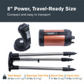 - 8-INCH SCHMIDT-CASSEGRAIN OPTICS: The large 8" aperture gathers enough light to reveal fine lunar details, cloud bands on Jupiter, and deep-sky objects like galaxies and globular clusters—all in a compact, portable form factor.
