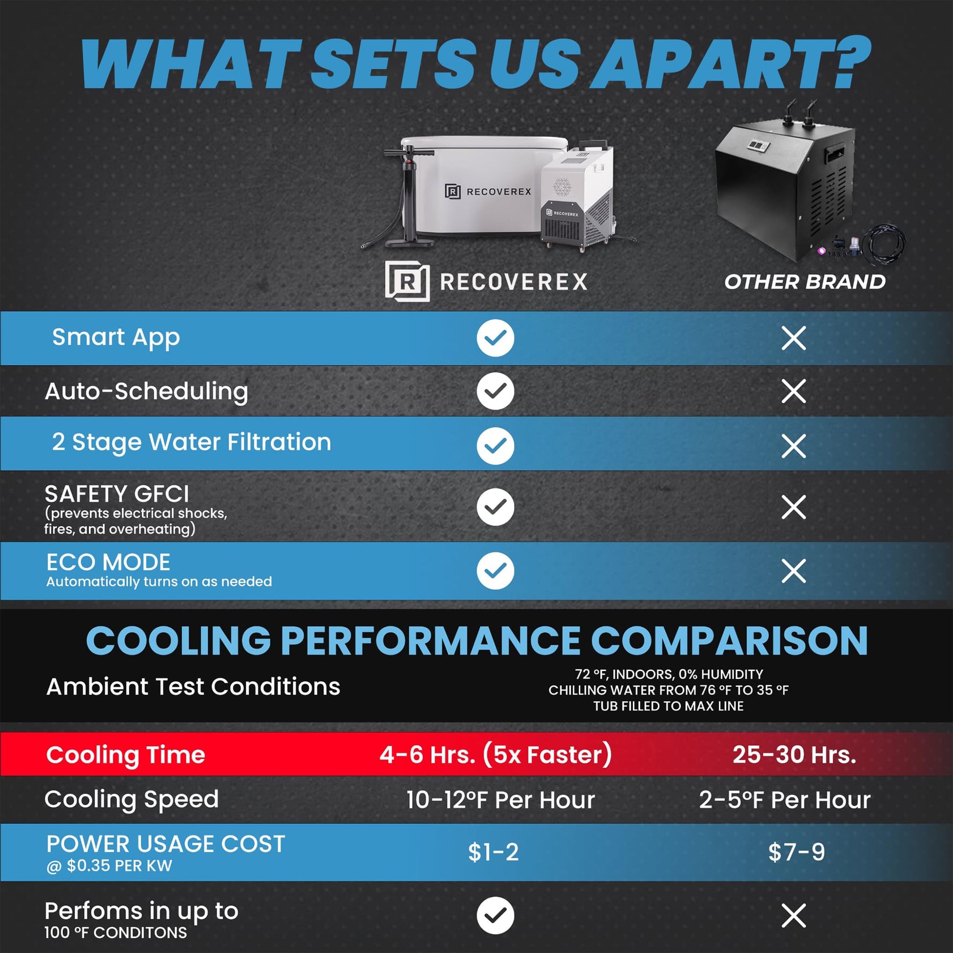 - WELLNESS-ENHANCING COLD PLUNGE SYSTEM: Designed for muscle recovery and circulation support, this ice bath water chiller has 2-step filtration with non-chlorine treatment, keeping water fresh while enhancing the benefits of cold immersion.