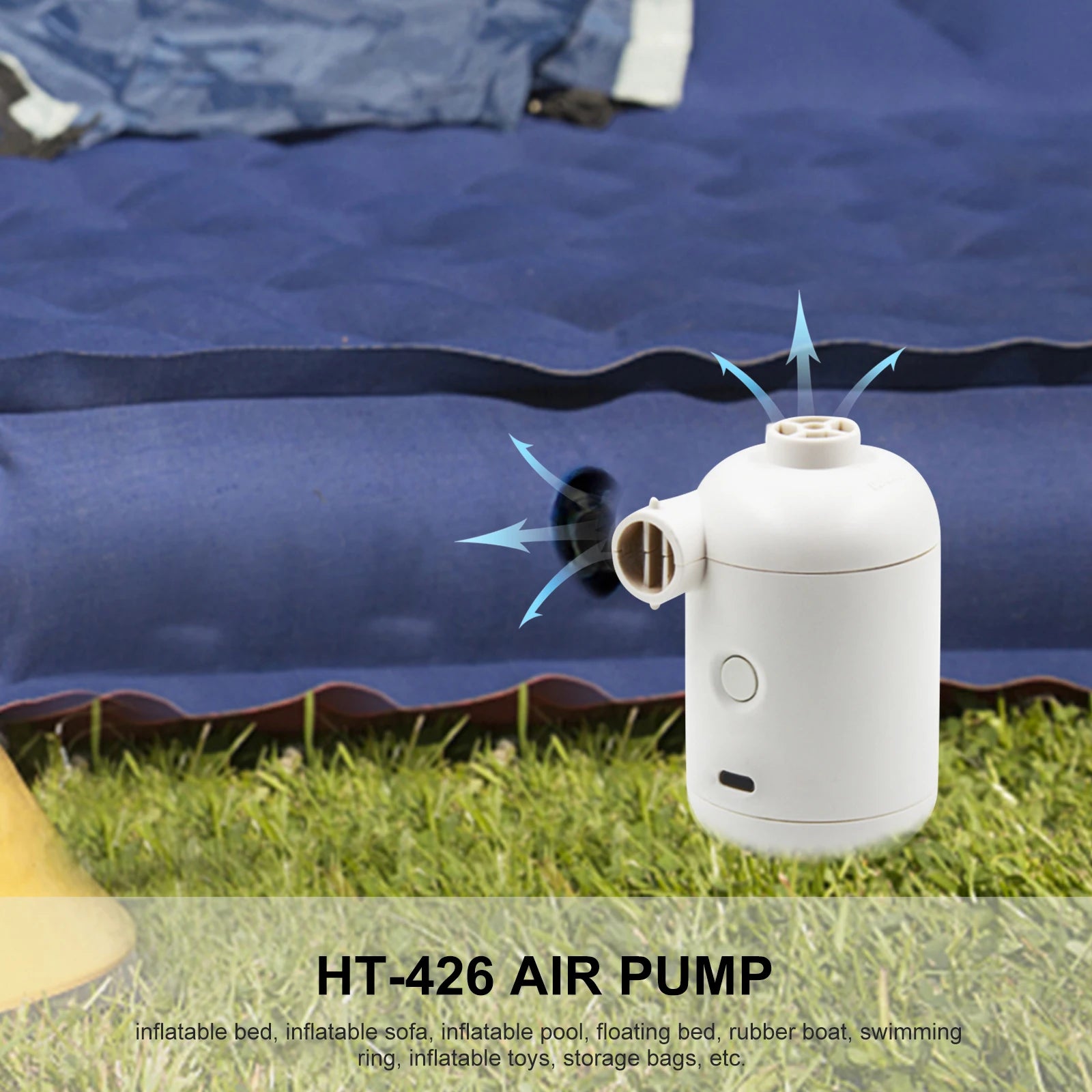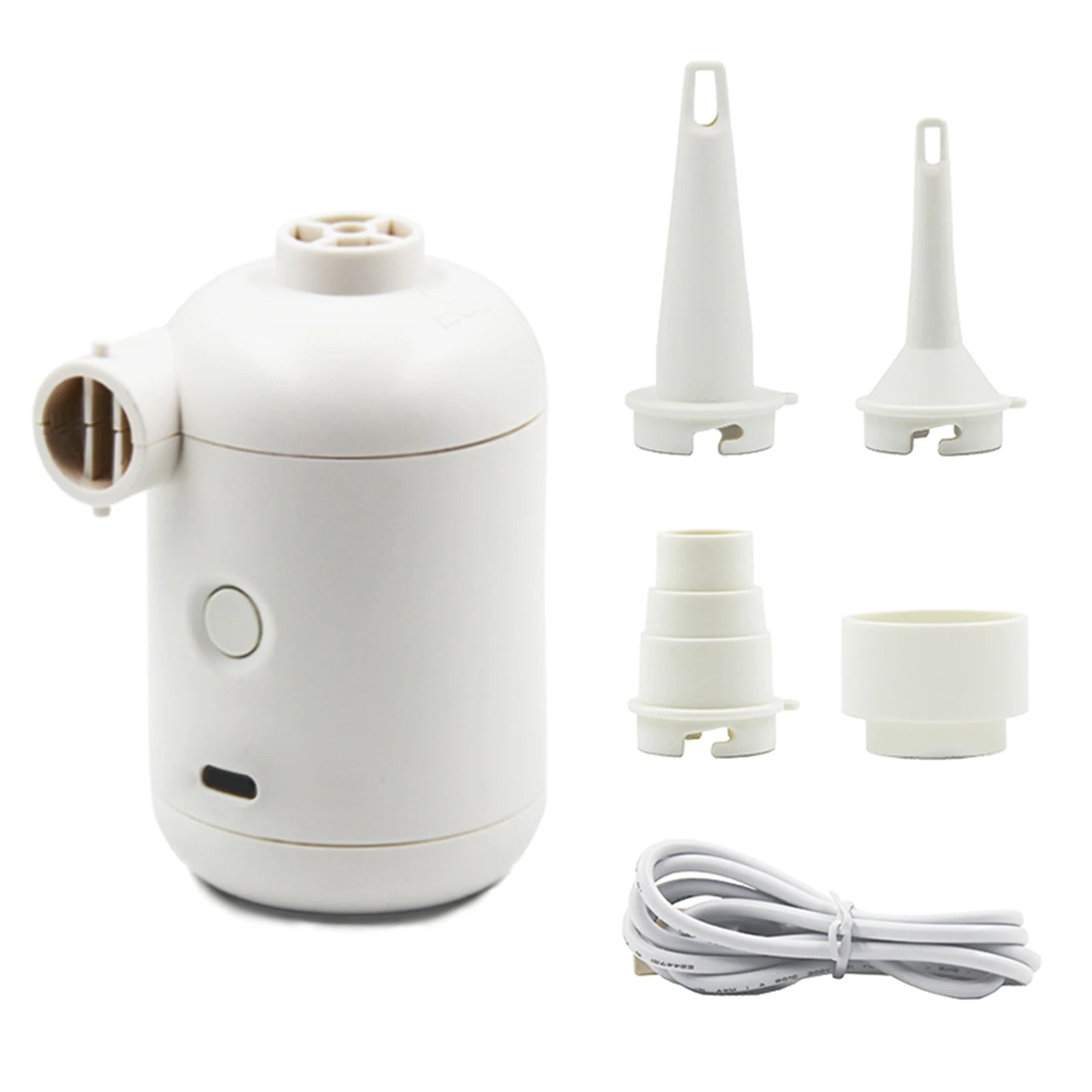 The Electric Air Pump is a compact and efficient inflator/deflator designed for outdoor adventures and home use. Equipped with 4 interchangeable nozzles, it easily inflates or deflates air mattresses, swimming rings, pool floats, and other inflatables. Its USB plug-in design allows for convenient power from a variety of sources, making it ideal for camping trips or travel. Lightweight and portable, this pump fits perfectly into your gear bag and is built to deliver quick and powerful performance wherever you need it.