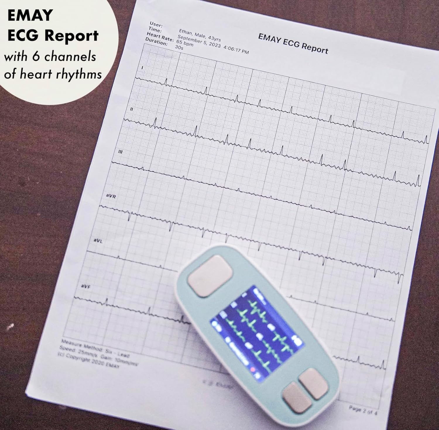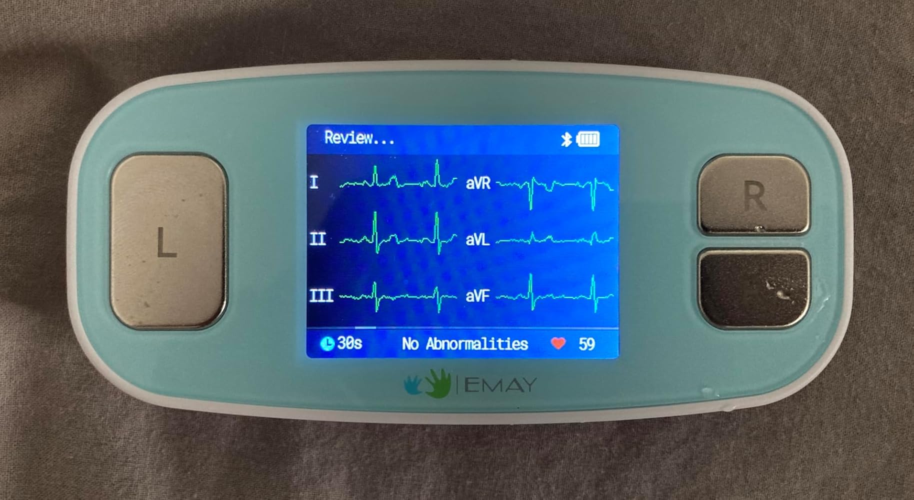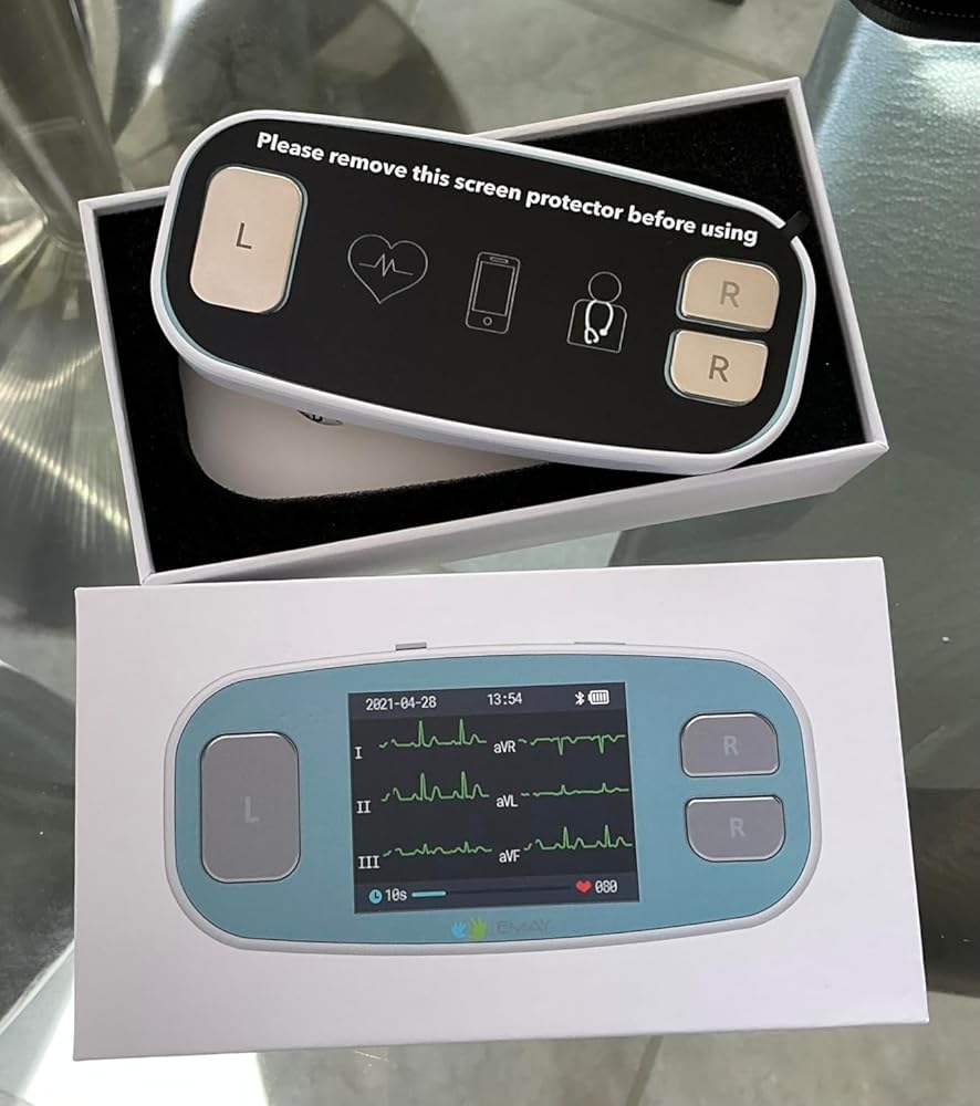 I’m very impressed with this device overall, but it has limitations. I took this to the hospital where I work and all the doctors who saw it were very interested in this device and wanted to try it out, so I will include technical ECG details in this review helpful for them as well. No personally identifiable health care information will be included in this review. We did not and would not use this machine on any of our actual patients; this is a home use device for consumers. That said, several of the doctors wanted to know where they could buy one for their own home use, and I directed them to this listing here on Amazon. Any EKG tracings are anonymous examples only and include no personal information. No personal health advice will be given. If you’re worried about your own heart health, make sure you consult with your own doctors about this in a timely manner. ECG and EKG mean the same thing: electrocardiogram.- This is a 3-lead ECG/EKG device that will display a tracing of 6 limb leads: I, II, III, and additionally it displays the calculated leads aVR, aVL, and aVF. The tracings can be displayed clearly on my tablet device by downloading the app. This overall works very well and is easy to use. There is also included software that can be used with a home desktop or laptop computer, but I did not use that. The corresponding leads on a typical 12-lead machine are the Red, Black, and White leads. The Right Leg/Green grounding lead on a 12-lead machine is not needed for this portable device. Touch right and left fingers on the front and touch to your left leg on the back and it works. If you only want a single lead, there is a switch for that, then just a right and left finger on each side of the front of the device will do.- The P waves did not always display very clearly when I tested this several times, often the amplitude was too low and there was frequent artifact. Also some minor general baseline artifact here and there. The greater amplitude QRS complexes displayed better, T waves in-between. ST segments generally displayed clearly. PR segments less reliable. The QRS axis can be easily calculated within about 10 to 15 degrees by anyone who knows how to read the vectors. Most basic rhythms and common arrhythmias can be quickly sorted.- This is not the same quality as a hospital grade EKG and not meant to be, and it shouldn’t be relied upon as a home substitute for that. Anyone worried about a serious heart issue or chest pain should call 911 and go to the nearest hospital with an Emergency Department.- This does clearly display regular and irregular rhythms. If it gives an arrhythmia warning, this should be checked by a qualified medical professional. The lack of P wave clarity can make some atrial arrhythmias difficult to sort, but regular versus irregular can be seen at a glance, and some P waves are more clear, even if lower in amplitude.- Can’t rely on the on-board interpretation software. One EKG clearly showed left axis deviation, others showed non-diagnostic T-wave abnormalities. Another showed voltage criteria for LVH in lead aVL. The machine indicated “No Abnormalities” in all these. Leave it to trained health care professionals to interpret EKGs.- This does not include chest leads V1 to V6. That isn’t a negative because the device isn’t built for that. As such though, this should not be looked at as a substitute for that.- The carry case is not included, that is an additional purchase, also conveniently available here on Amazon. For a EKG device of this quality, I ordered that as well.
