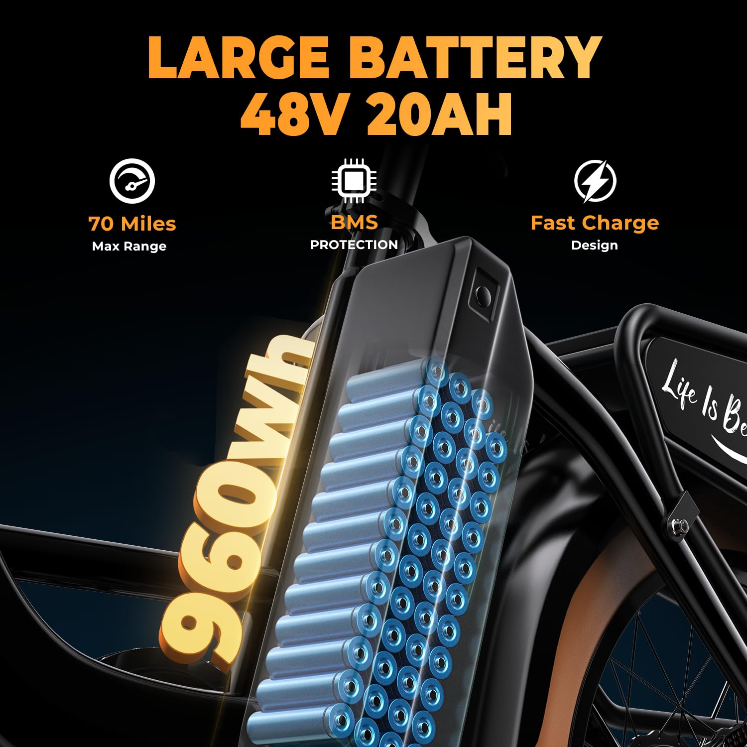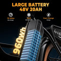 - 𝐋𝐨𝐧𝐠 𝐫𝐚𝐧𝐠𝐞& 𝐋𝐚𝐫𝐠𝐞 𝐁𝐚𝐭𝐭𝐞𝐫𝐲: City4.0 e-bike comes with powerful 48V 20 Ah Built-in waterproof removable Cells lithium-ion batter,achieves a range of 70 miles in pedal assist mode and 30+ miles in electric mode so that the electric bicycle can daily commute needs or meet travel. This ebikes for adults have two charging methods, remove the battery to charge or direct charging on the bike, ebikes for adults is your best choice.