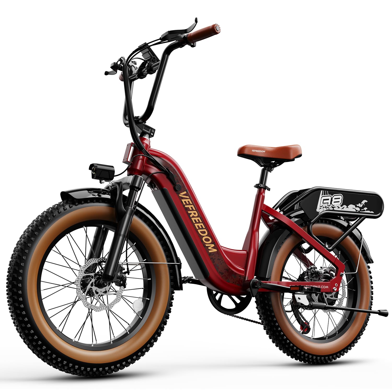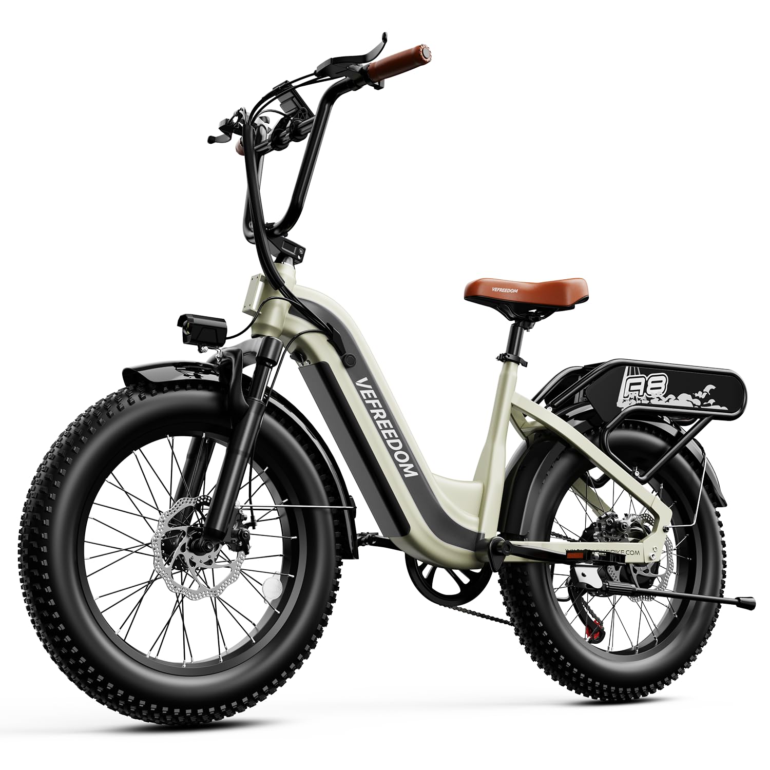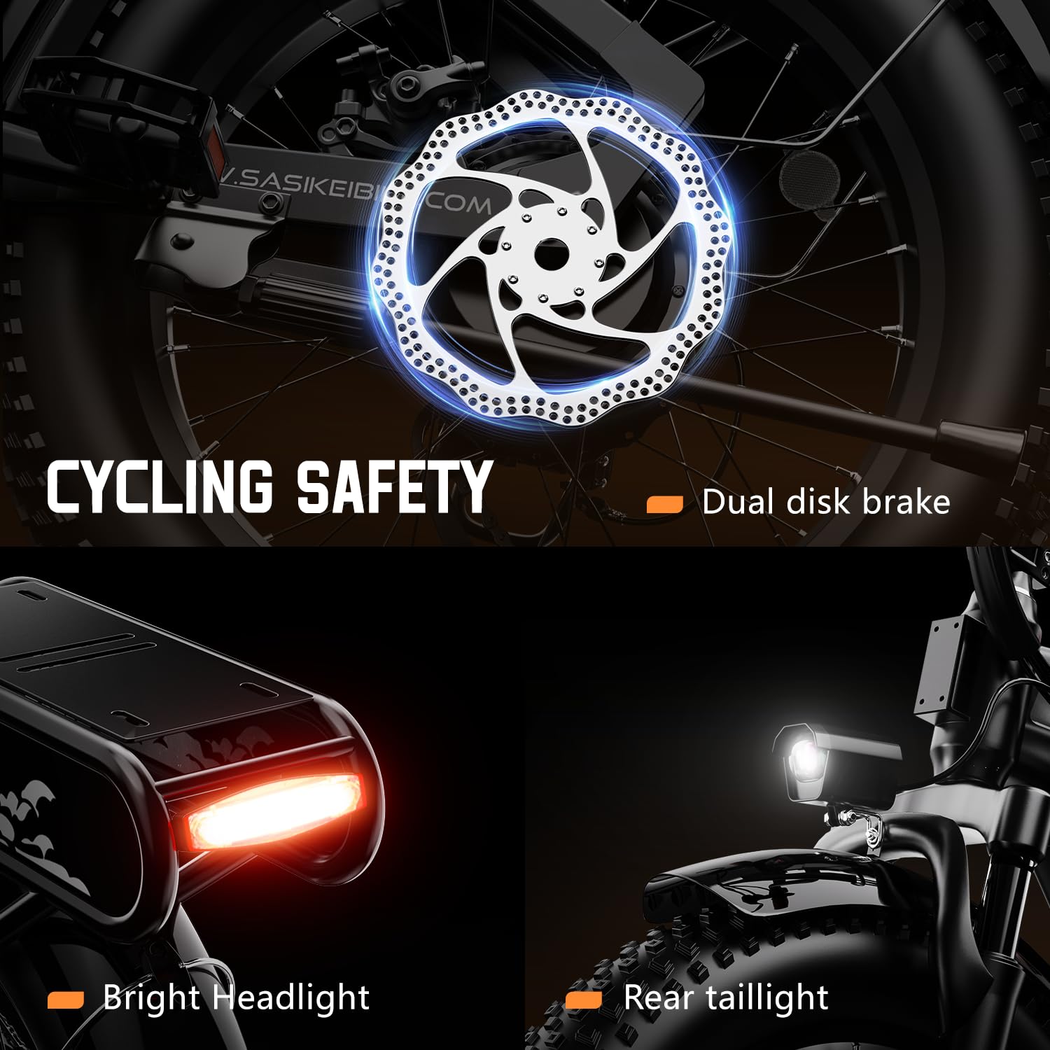 - 𝐄𝐫𝐠𝐨𝐧𝐨𝐦𝐢𝐜 𝐒𝐡𝐨𝐜𝐤-𝐚𝐛𝐬𝐨𝐫𝐛𝐢𝐧𝐠 𝐒𝐲𝐬𝐭𝐞𝐦: Featuring Front Suspension and Dual Disc Brakes: Equipped with 2 front fork spring shock absorbers and 2 puncture-resistant 20‘’*4.0 fat tires, , providing outstanding shock absorption performance. Combined with front and rear mechanical disc brakes and the EABS system, you can enjoy a comfortable riding experience and powerful braking even on steep slopes, rugged terrain, or other extreme terrains.