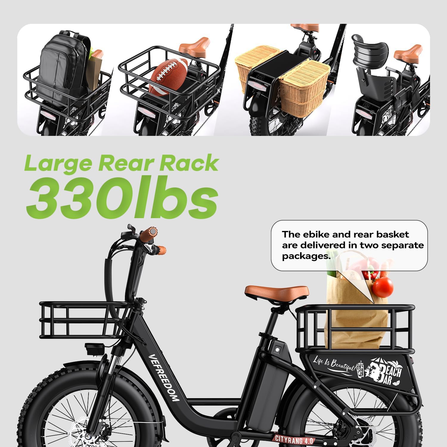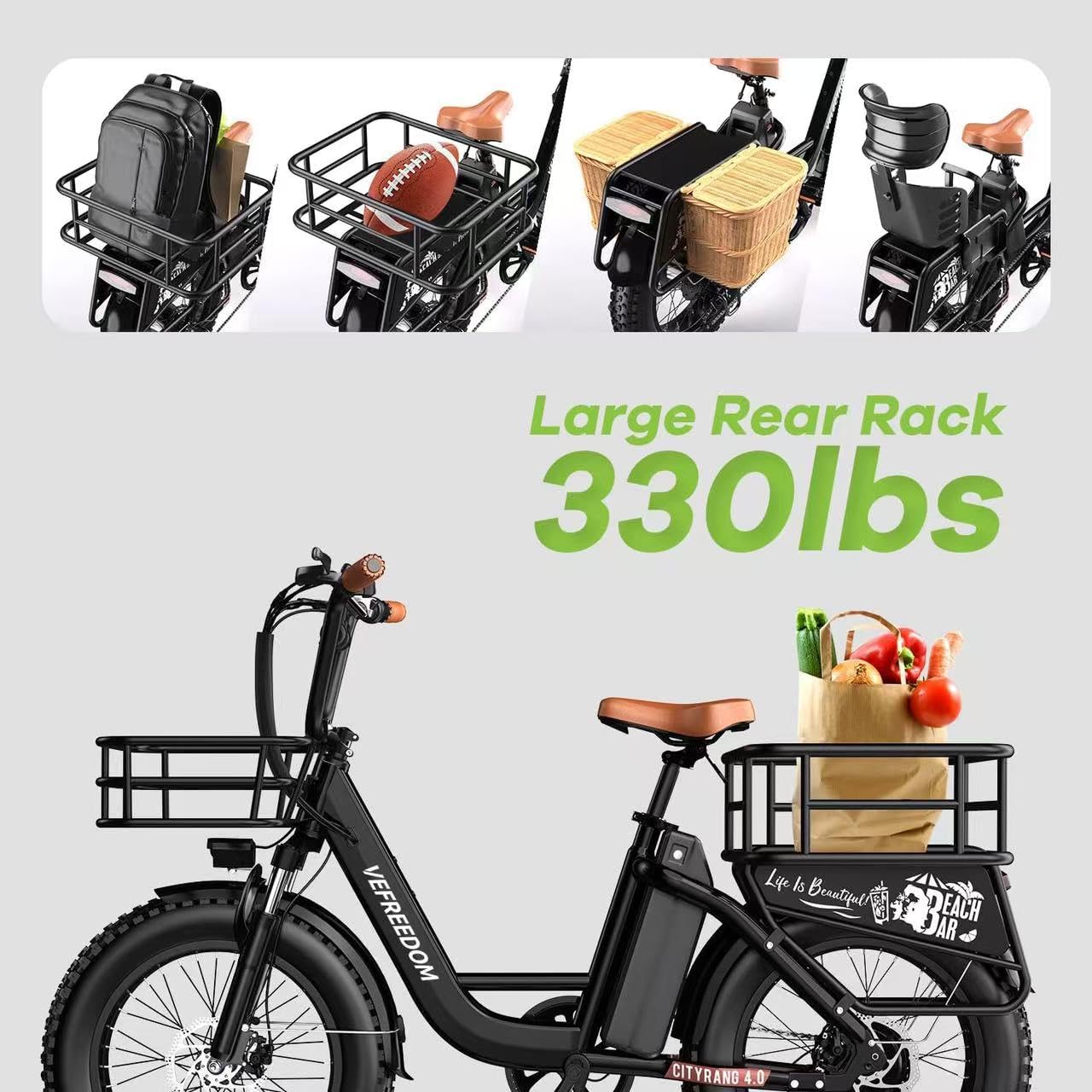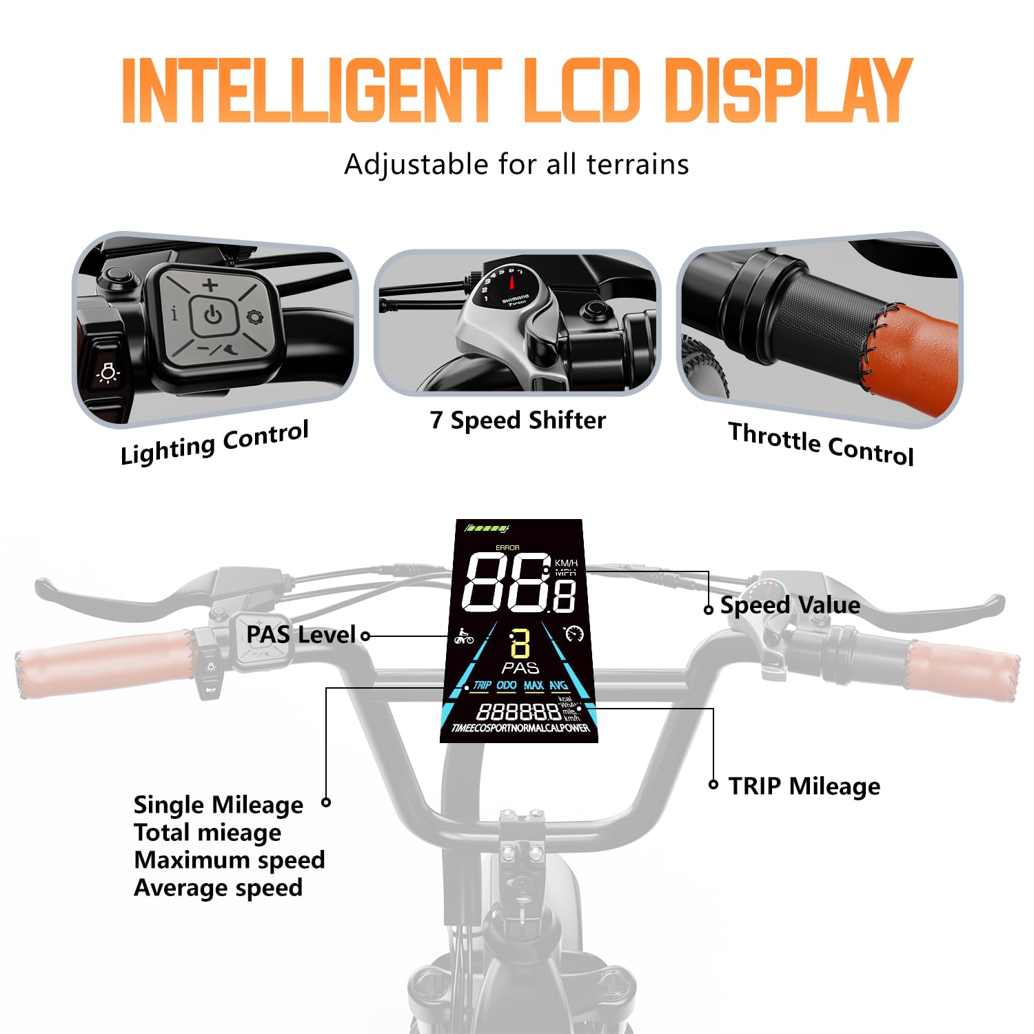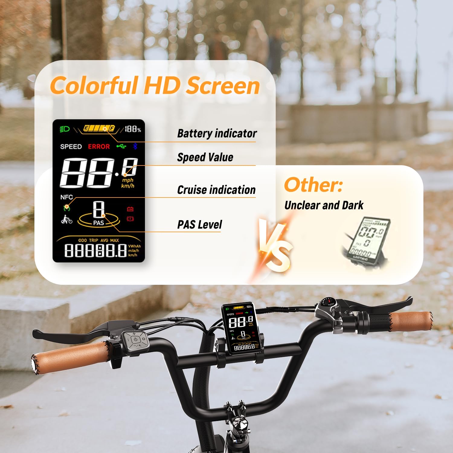 - 𝐂𝐨𝐦𝐟𝐨𝐫𝐭 & 𝐕𝐞𝐫𝐬𝐚𝐭𝐢𝐥𝐞 𝐑𝐢𝐝𝐢𝐧𝐠:Electric bike with 5 Riding Modes(Pure electric mode,Pedal assist mode,Classic bike mode) and 5 Pedal Assist Levels(PAS) for your choice.The HD color LCD display shows real time speed, battery power, pedal assist levels, mileage and more,it's easy for you to track your rides and view it clearly even when riding at night. A well-built sturdy rear rack with strong load-carrying capacity easily supports your cargo and groceries.