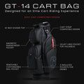 Designed for an Elite Cart Riding Experience: The Ghost Golf GT-14 Cart Bag was crafted with a cart strap compatible design to provide the ultimate golf cart experience. Featuring 14 full-length dividers, our bag offers efficient organization and protection for your gear. Compatible with any golf cart.