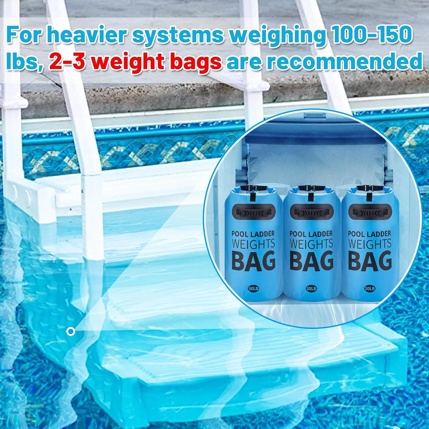 Heavy Duty Pool Ladder Weights - 50lbs Sand Fillable Universal Sand Bags Step Anchors, 500D PVC Waterproof Tear-Resistance Foldable Sandbags for Above Ground Swimming Pools Stair Entry Systems, 2PCS