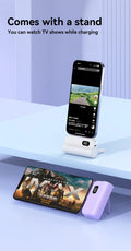 Includes a convenient built-in phone stand for hands-free video streaming or video calls while your device charges.