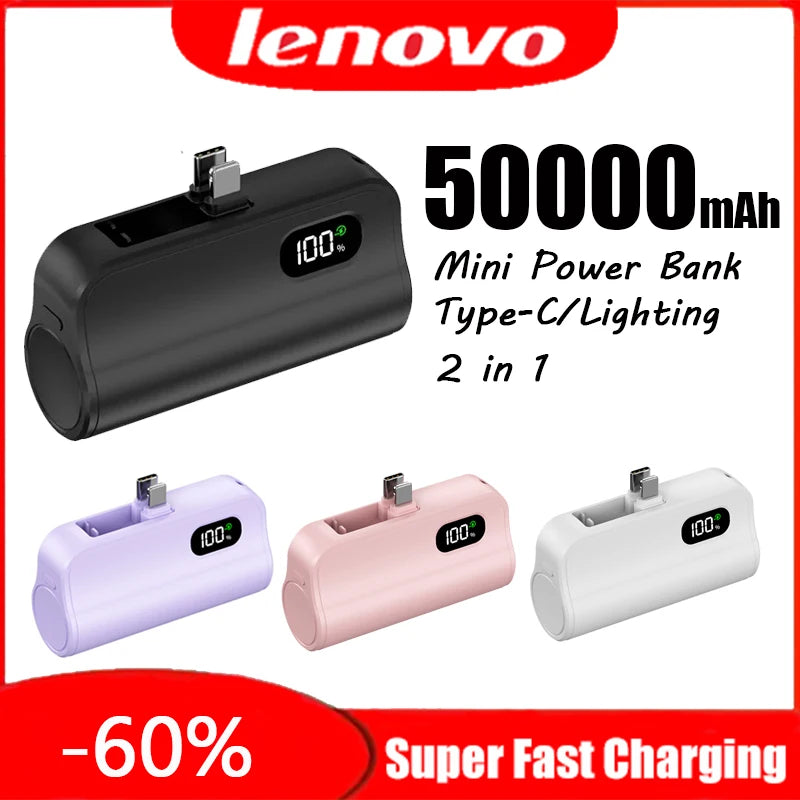 Lenovo Mini Capsule 50000mAh Portable Power Bank β Ultra High Capacity, Fast Charging, Built-in Cables
