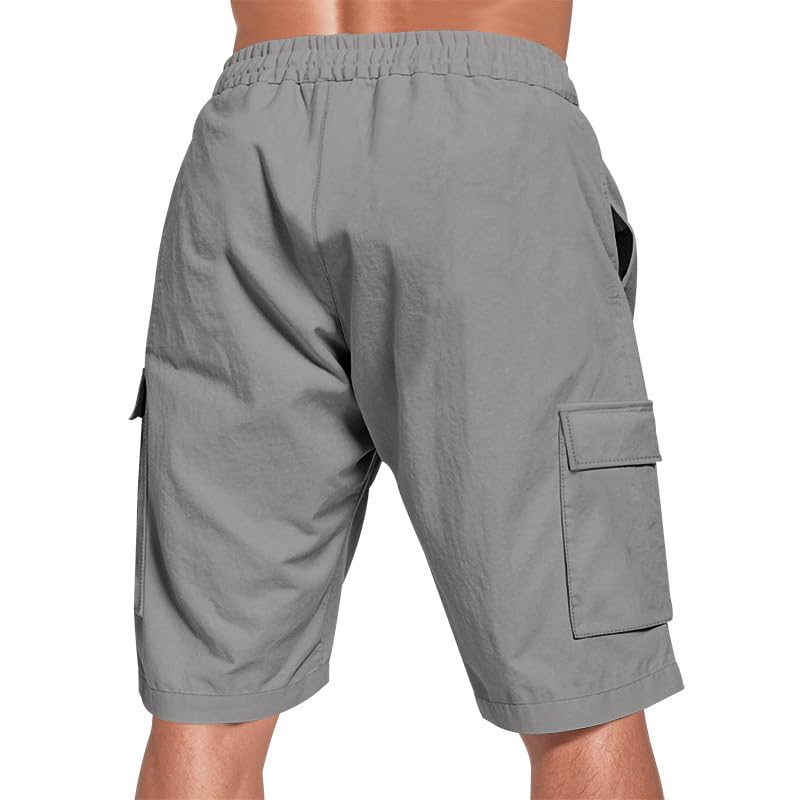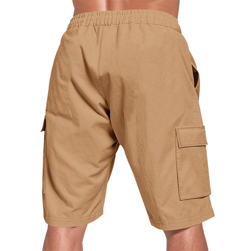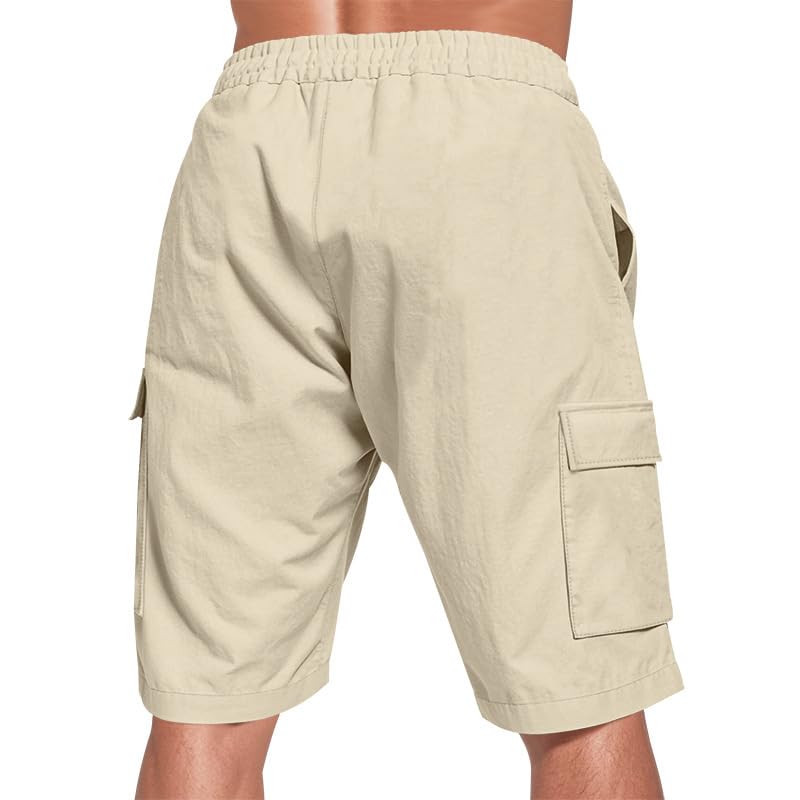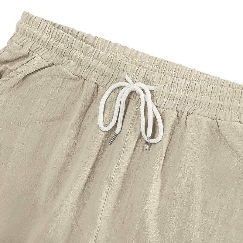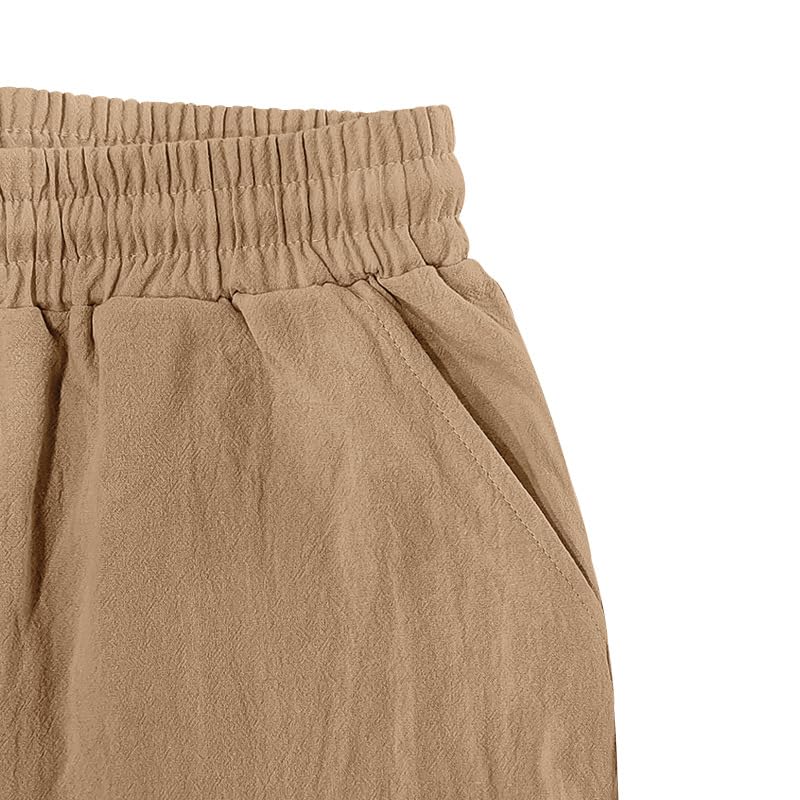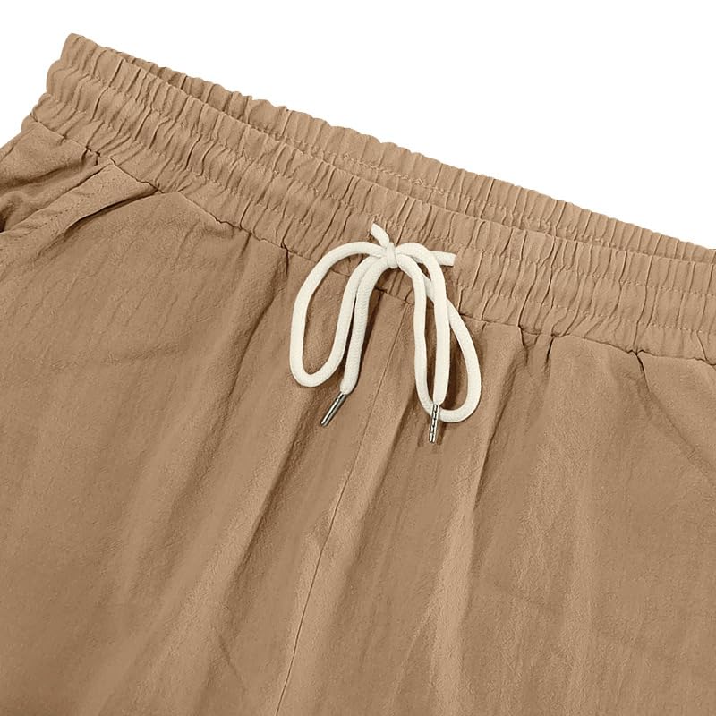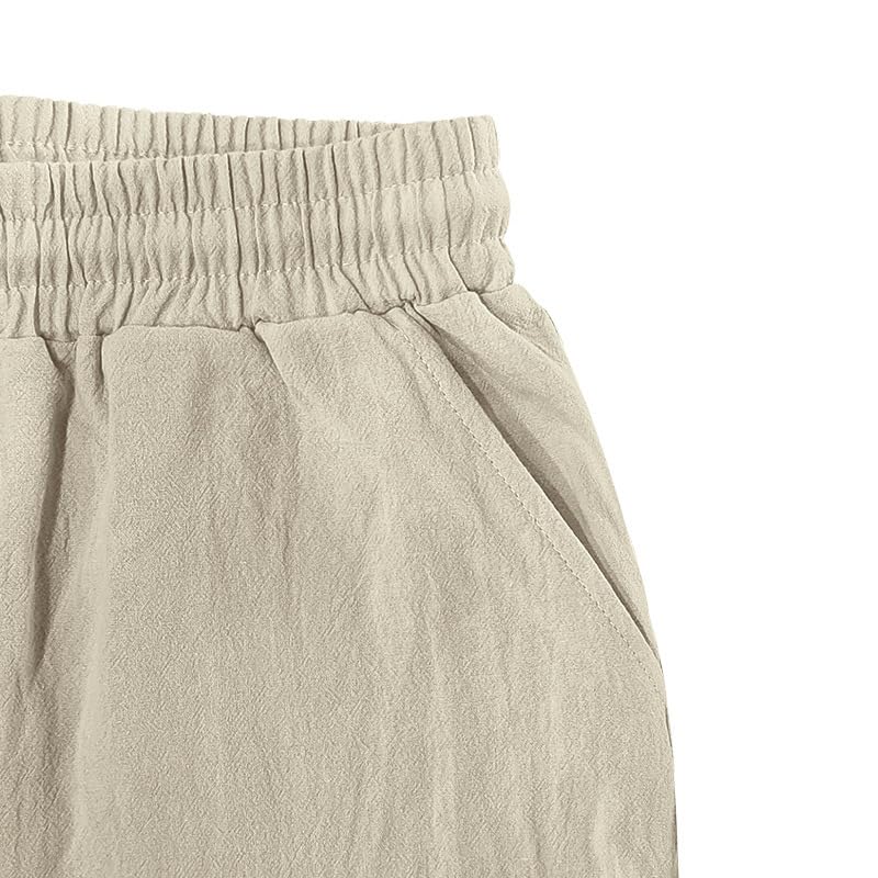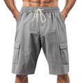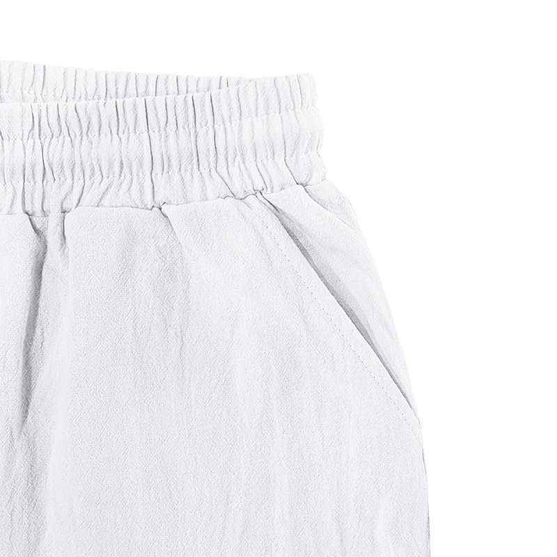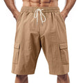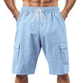 Men Linen Summer Shorts Solid Color Elastic Waist Drawstring Beach Pants Casual Fashion Loose Bermuda Shorts