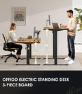 OffiGo Electric Standing Desk with 3-Piece Board, 71 Inch Height Adjustable Large Desk with Power Outlets, Sit Stand Table, Writing Computer Desk for Home, Office, Workstation, Rustic Brown
