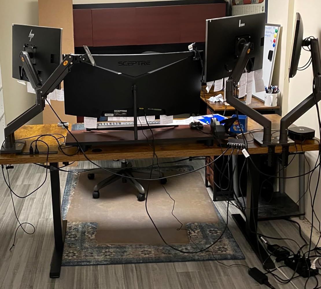 - Spacious Workspace:This standing desk's top consists of 3-piece board that provides more usable area with extra depth and width for a variety of monitor and laptop or personal items, helping you tackle your workday with ease. The spacious desktop also gives you more ideas for studying, working and gaming