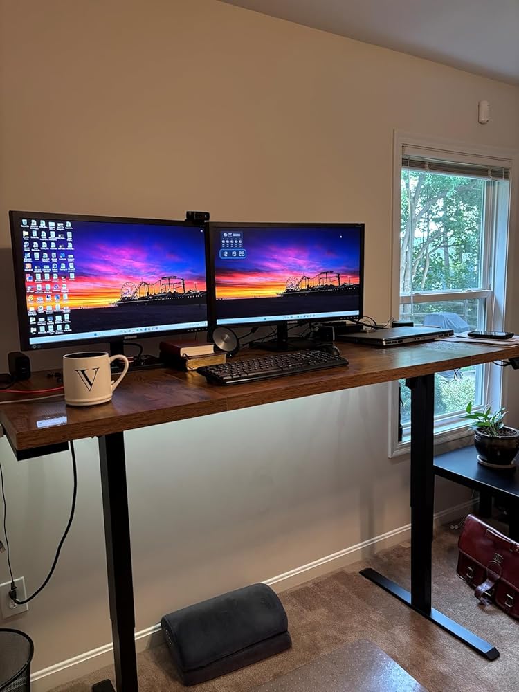 - Thicker Desktop Panel: Featuring thicker 1.38″ desktop panel, this height adjustable electric standing desk has a sturdier construction and better quality. The office computer desktop includes 2 cable management holes that to keep your desktop cables clean and organized