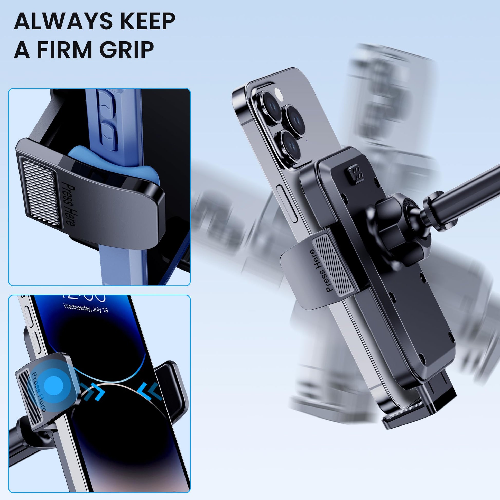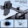 - Adjustable Telescopic Arm: iPhone holder for car has a 360-degree ball joint and an adjustable telescopic arm that extends from 2.8 inches to 5.0 inches and can be adjusted up and down by 270 degrees. It offers unlimited viewing angles whether mounted on the dashboard or windshield. The ball joint allows for both horizontal and vertical phone rotation, preventing obstruction of the driver's view while driving.