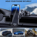 - Easy Installation: Dashboard phone holder features a one-touch release system. Simply touch it gently with your finger to easily install or remove the phone from the mount. It frees your hands completely, allowing for safe driving.