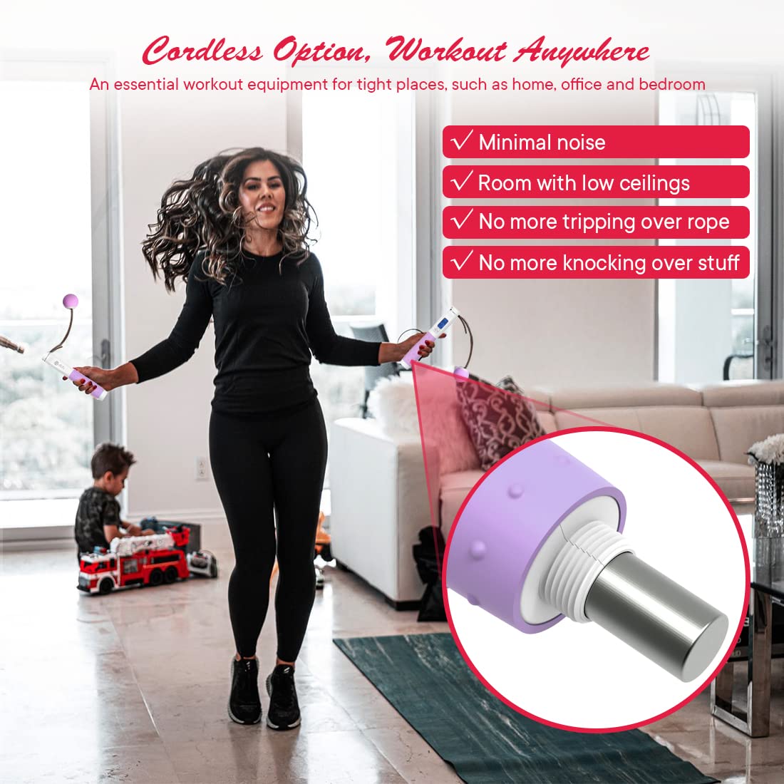 - Cordless for Tight Space Workout - The Te-Rich jump ropes for fitness uses anti-slip handles with short leads attached to mimic the feel of skipping with a real rope without actually needing to swing one around, the low-impact tool could give people who don't have a ton of room to work with a good alternative to do their workout; thanks to the ropeless design, you'll never need to worry about tripping yourself up