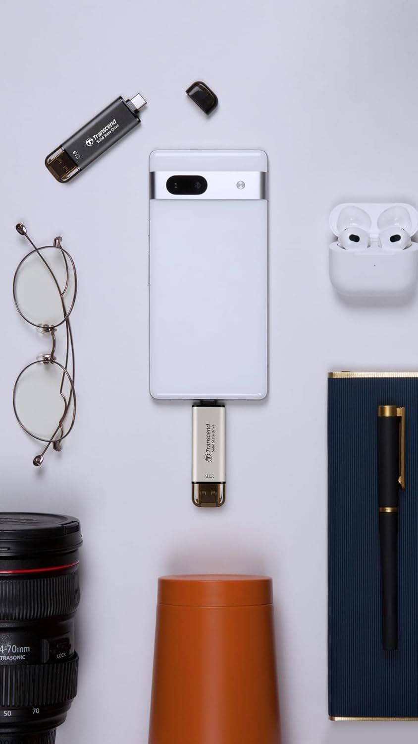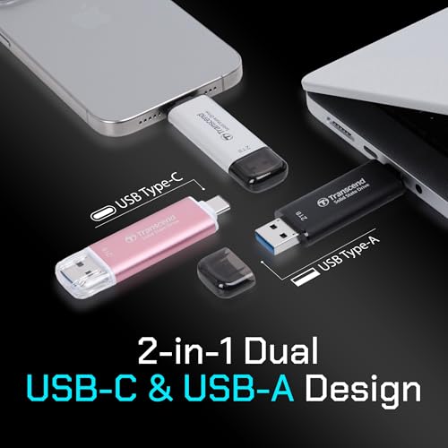 Transcend 512GB External SSD, Up to 1,050MB/s, Dual USB Flash Drive for iPhone&iPad&Mac, Windows&Android, Tablet&PC, Smart TV, USB 3.2 Gen 2 Thumb Drive Photo Stick, 2-in-1 Type C &Type A Memory Stick