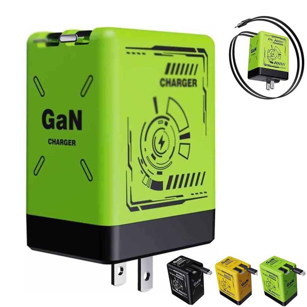 W&O 2-in-1 GaN Compatible with 120w Fast Charger, Retractable Wall Fasts Charging Power Adapter with All in One Foldable Plug, Versatile Portable Fast Charger Module for iPhone, Phone, Tablet(Green)
