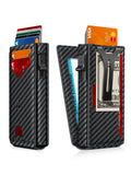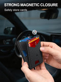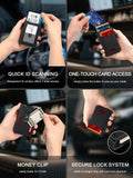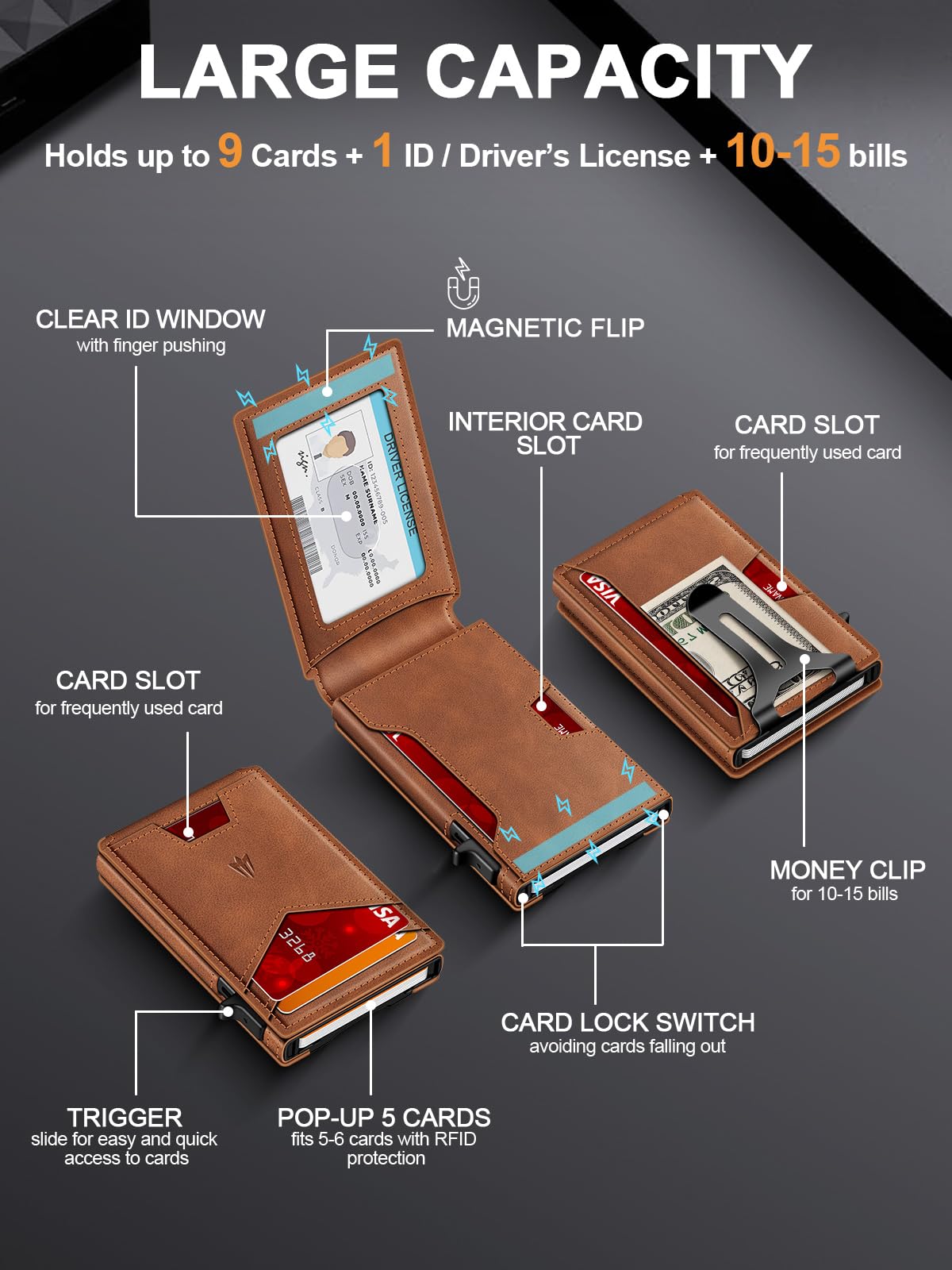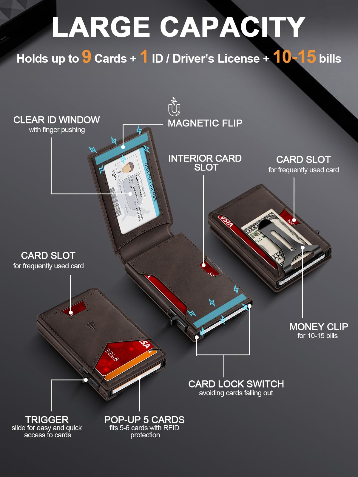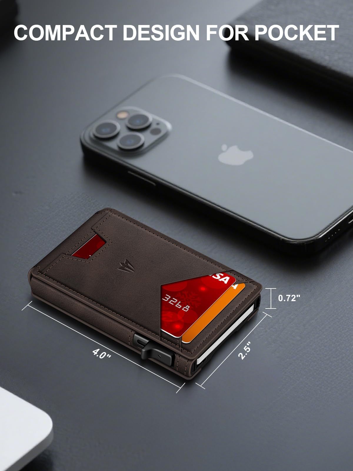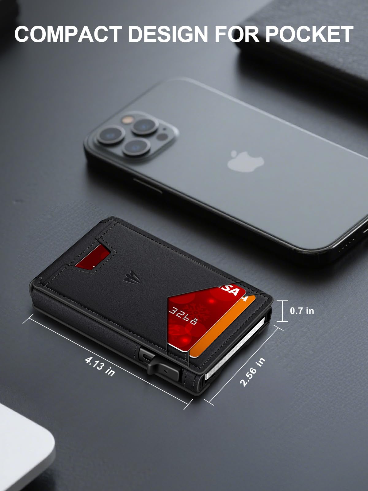 - Quick-Access Convenience - Effortlessly press the side button of the pop up wallet—access your daily card in 1 second. No more digging through bulky bifold wallets! The secure magnetic flip cover features embedded magnets in the premium microfiber flap, snapping closed faster than standard wallets to lock cards securely. A smart choice for men's wallets that combines safety and fashion!