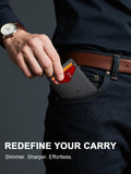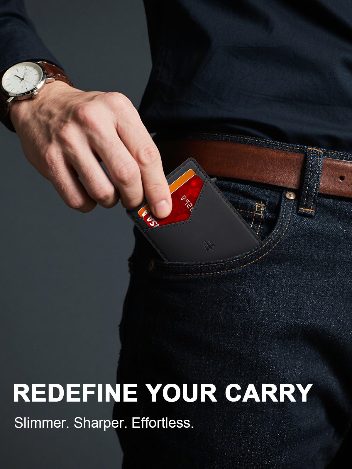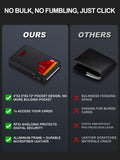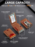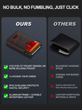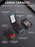 - Ultra-Slim Design - The slim wallet for men only 0.72" thick and engineered with aerospace-grade aluminum alloy and microfibe leather, this minimalist wallet for men profile fits discreetly in front pockets or jeans. Features a pop-up card holder for 10-13 cards and a spring steel money clip for your bills, a metal wallet cuts bulk by 60% vs traditional leather wallets.