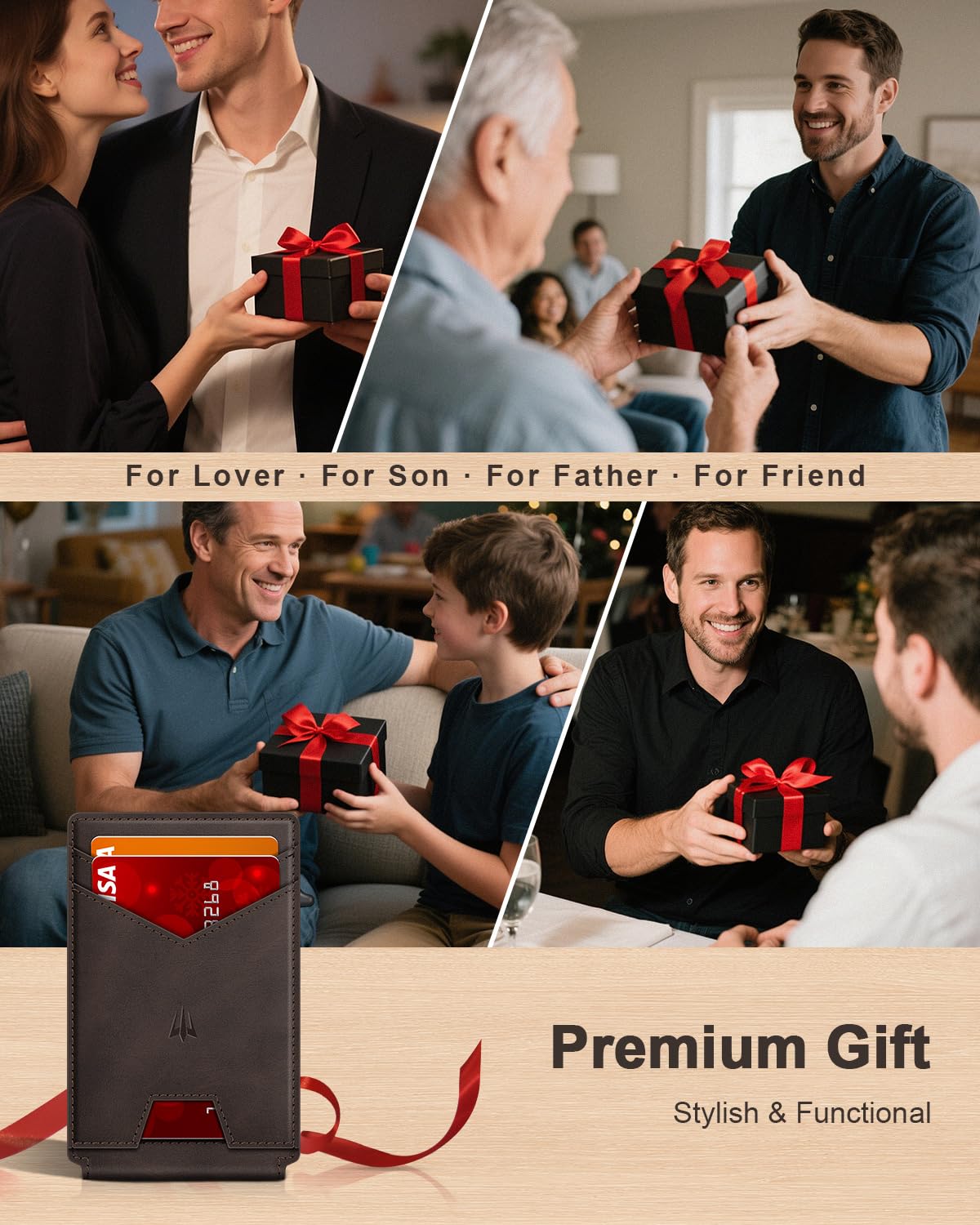 - Perfect Gift for Men - The credit card wallet is packaged in a luxury gift box—perfect for birthdays, Father’s Day, Christmas or graduations. This smart wallet combines minimalist style with rugged durability, ideal for your dads, lovers, sons—a practical gift he’ll actually use daily.